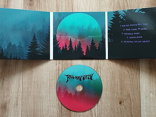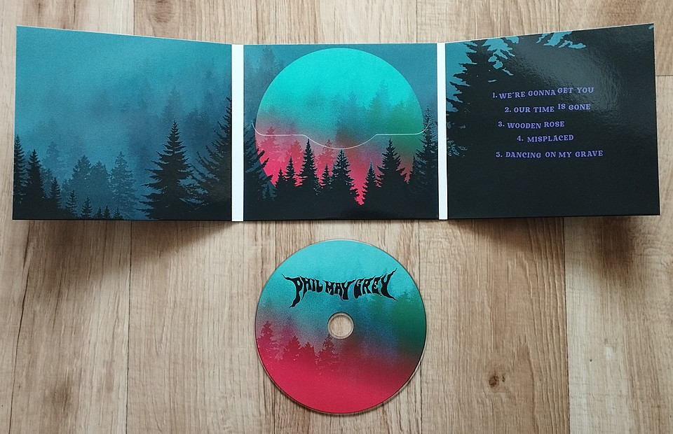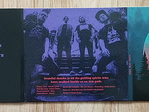 Ano, novinka vyšla na fyzickém nosiči, což samozřejmě kvituju. Digipack má šest stran, je z lakovaného pevného papíru a vypadá stylově. Titulní strana naznačuje, jaká hudba se bude na vloženém disku nacházet – stačí pohled na logo vyvedené stonerrockovým písmem a na barvy, v nichž nechybí hororová fialová. Kombinace fialové, zelené a oranžové pak zdobí i další stránky, které vypadají vkusně. Autorkou obrázku i designu je výtvarnice Divá Bára, která hezky vystihla atmosféru nahrávky. Jediné, co v obalu chybí, jsou texty. A i když jsem je od kapely dostal, moc moudrý z nich nejsem, tedy z překladů z překladače… (úsměv) Něco napovídají i názvy skladeb a vizuál obalu, vysvětlení ale nechám na kapele v připravovaném rozhovoru.