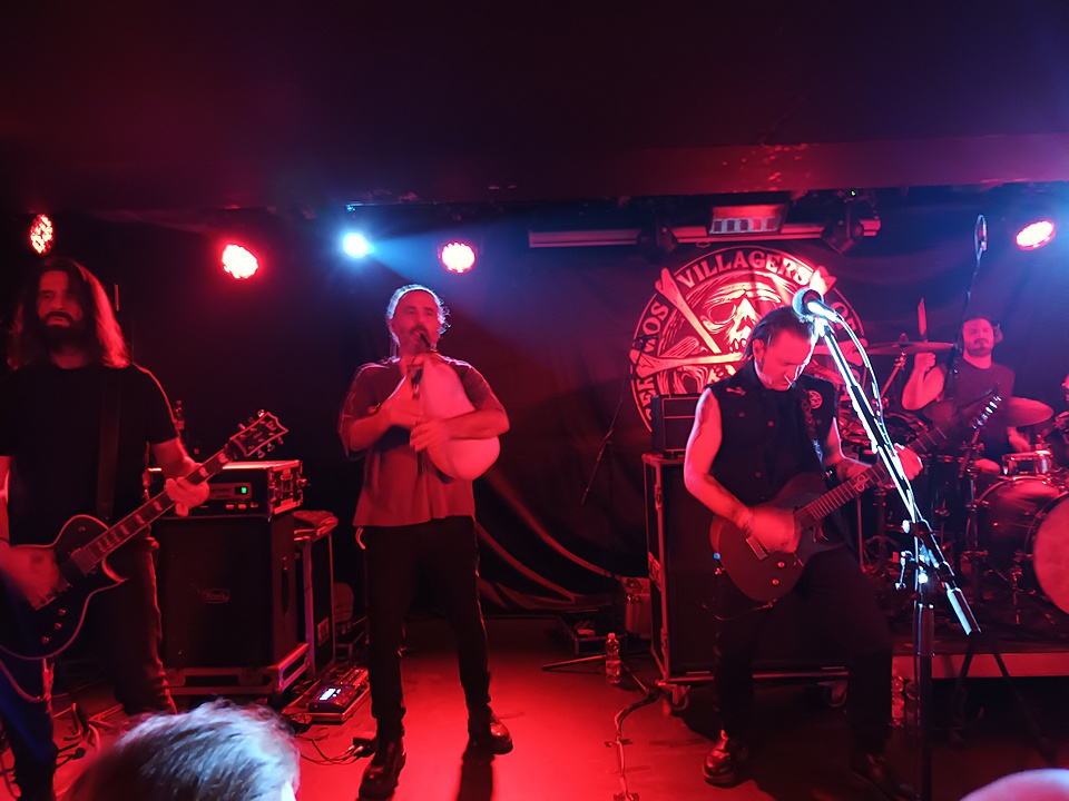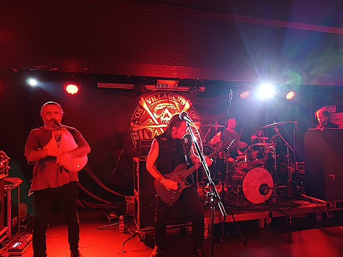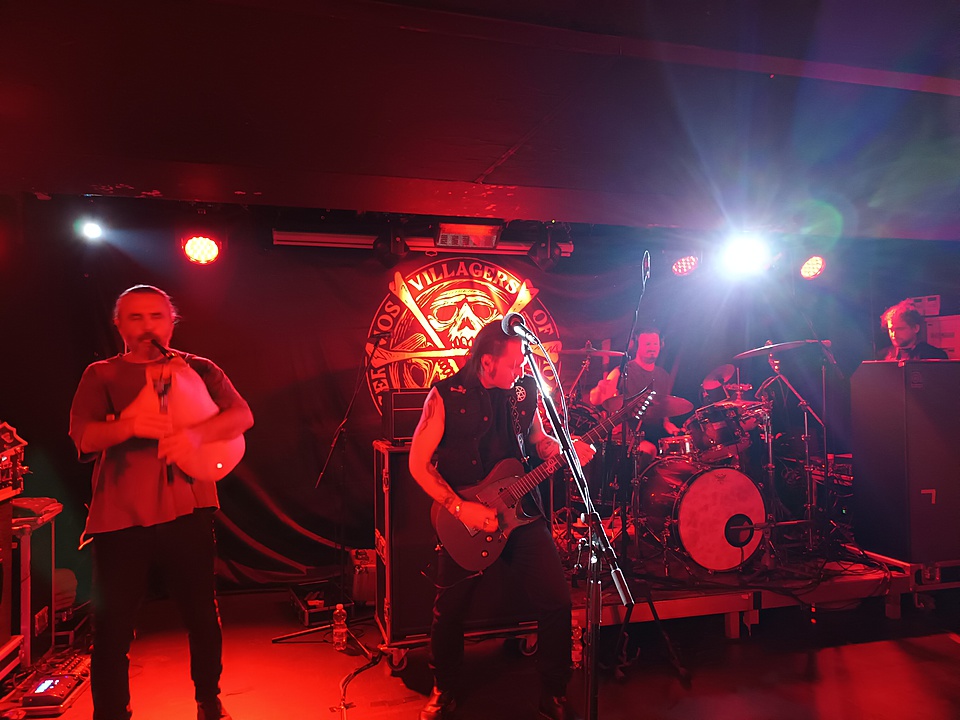 Při nástupu VILLAGERS OF IOANNINA CITY byl vizuál scény lehce odlehčen. Ne tolik temnoty, což dobře korespondovalo s hudbou, která je oproti SUNATTA vzdušnější a přívětivější. VIC obohacují svoji muziku o dechové nástroje, klarinet, dudy, kaval. A byl jsem moc rád, že na koncertě byla role těchto nástrojů nezastupitelná. Folk motivy jsou u VIC silné a pokud by chyběly, ztratila by jejich hudba velkou část svého kouzla. Celkem zaznělo dvanáct skladeb, jak z připravovaného alba „Venceremos“, tak „Age of Aquarius“, ale také z prvního alba „Riza“, zde šlo o předělané lidovky, „Skaros“ a „Ti Kako“. Vše bylo předvedeno velmi suverénně, hlavní pozornost na sebe strhával zpěvák/kytarista a právě šedovlasý člen kapely obsluhující dechové nástroje. VIC střídali angličtinu a řečtinu, zdálo se mi, že v publiku bylo dost Řeků, takže zpěvem byly doprovázeny jak hitovky „Dance of Night“ nebo „Father Sun“ s hymnickými refrény, tak i řecky zpívané zmíněné „Skaros“ a „Ti Kako“. Na zpěvákově angličtině je sice znát, že není rodilým mluvčím, ale vůbec mi to nevadí. Možná právě proto, že etno prvky hrají v jejich hudbě silnou roli a kapela se silně hlásí k řecké hudební tradici, to nejde do sebemenšího konfliktu.
