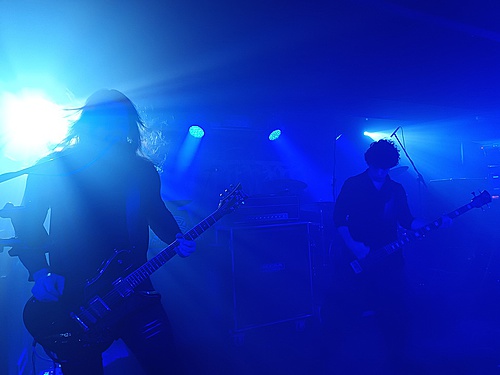 Jako předkapela nastoupila přesně v 20 hodin polská SUNATTA. Kdysi jsem je zaregistroval, pamatuji si, jak jsem zkoušel jejich album „Outlands“ z roku 2018, ale nedokázal jsem se na ně v té době naladit. A je mi to líto, podobné to bylo na koncertě. Pozornost jsem udržel tak do třetí písně, pak už jednotlivé songy začaly splývat. Až do poslední, sedmé skladby, SUNATTA nabídla průřez posledními třemi alby. Meditativní sludge, vzpomínka na OM a občas citace TOOL, bylo provázeno odpovídajícím způsobem ozdobenou scénou. Temnota a skutečné svíčky. To zmiňuji, protože spousta kapel pracuje jen s elektrickými. Vonné tyčinky, které v tak velkém prostoru sice přímo cítit nebyly, ale na podvědomé úrovni fungovat mohly. To vše skvěle dokreslovalo atmosféru k prezentované hudbě.
