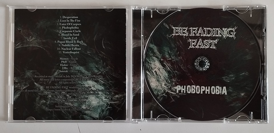 Už dvacet let působí, spíše nenápadně, na tuzemské scéně skupina BE FADING FAST. Vznikla odpojením většiny členů DEFLORACE v roce 2006, přičemž tehdejší rytmická sekce v ní působí dodnes. Kolem pilířů Dodana (baskytara, později kytara) a Smetáka (bicí) se sestava porůznu měnila, nejhlubší rýhu vyryl zpěvák Masters, který na nějaký čas vypadl, aby se po čtyřleté pauze v roce 2016 opět postavil k mikrofonu. Do kapely následně přibyli dva mladší hráči (Phill – kytara, Olby – baskytara), ale kapelu zabrzdily úrazy hned tří členů, takže nahrávání dlouho chystaného nového materiálu začalo až v červenci 2024 a na albu „Phobophobia“ se pracovalo přes půl roku. Na začátku toho letošního pak vyšlo ve fyzické podobě.