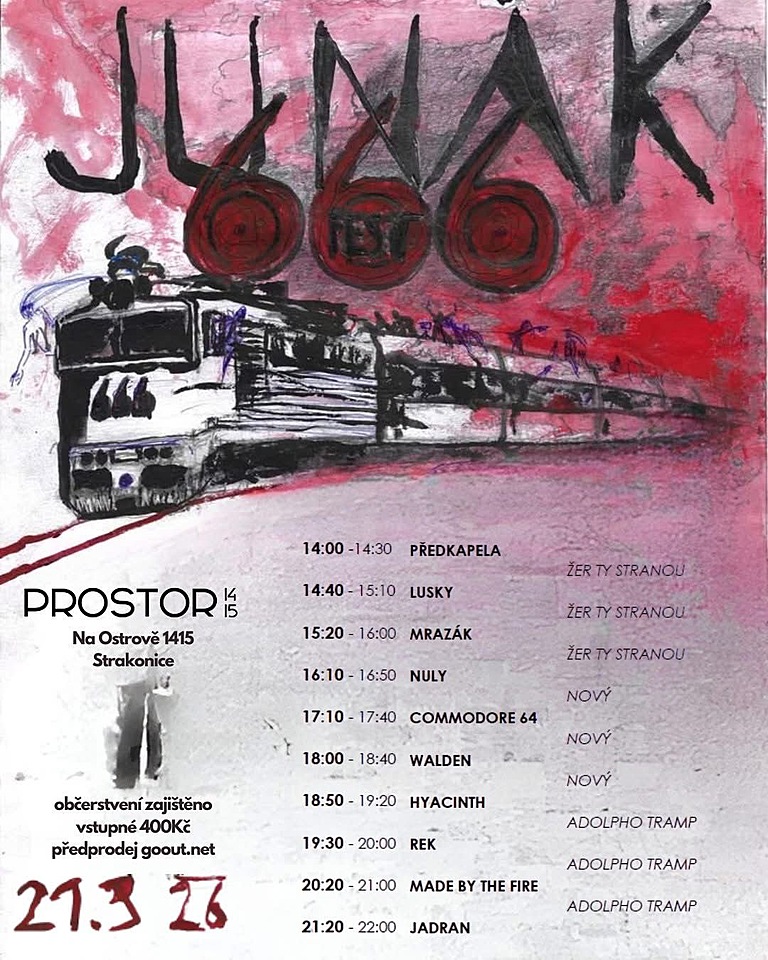Tvůrčí skupina NoHa uvádí JUNÁK 666 fest! „Tam, kde se potkává železniční trať z Plzně do Budějc (a dál) s tratí na Šumavu, brázdil kdysi tmou vlak magického jména JUNÁK 666. Strakonice byly vždycky křižovatkou, kde se potkával jih se západem, a navrch jsme předměstím Šumavy, a tak se tu odjakživa potkávali lidé i míchaly vlivy hudební... Přinášíme vám směs muziky kapel plzeňských, budějovických, (po)šumavských s nádechem dalekého východu, a srdečně zveme na tohle setkání napůl cesty.“ Citace z profilu neformální skupiny Jsme Strakonice pouze podtrhuje naše (jihočeská dvoučlenná „farma“ na Fobii) tvrzení, že žijeme v epicentru hudební stezky (Plzeň-Sušice-Horažďovice-ST-Písek-Blatná-Vodňany), která blahodárně ovlivňuje naše jinak celkem stereotypní životy.