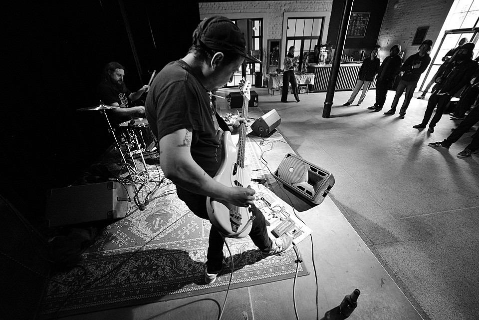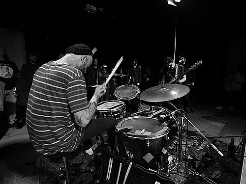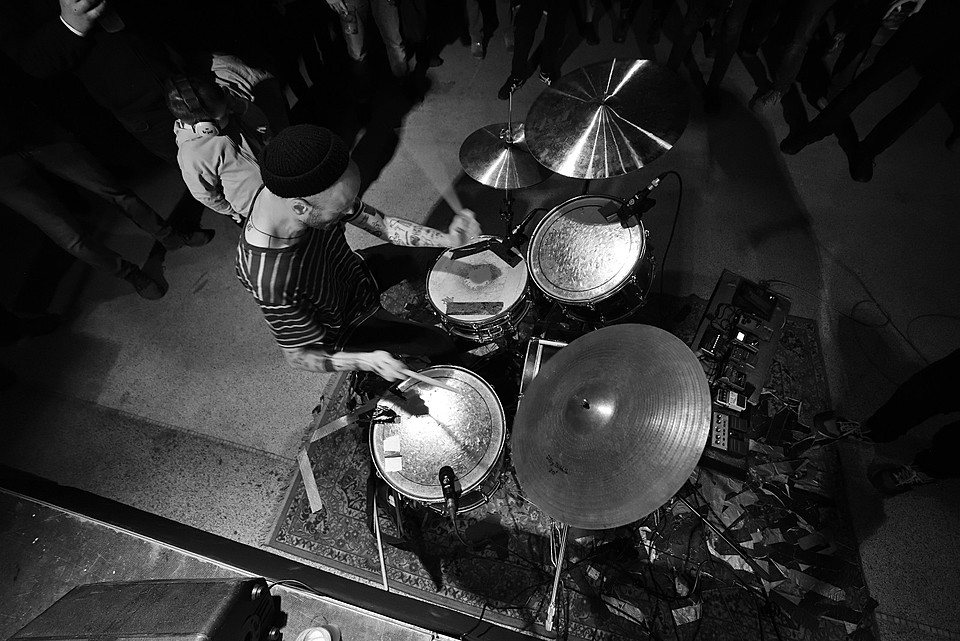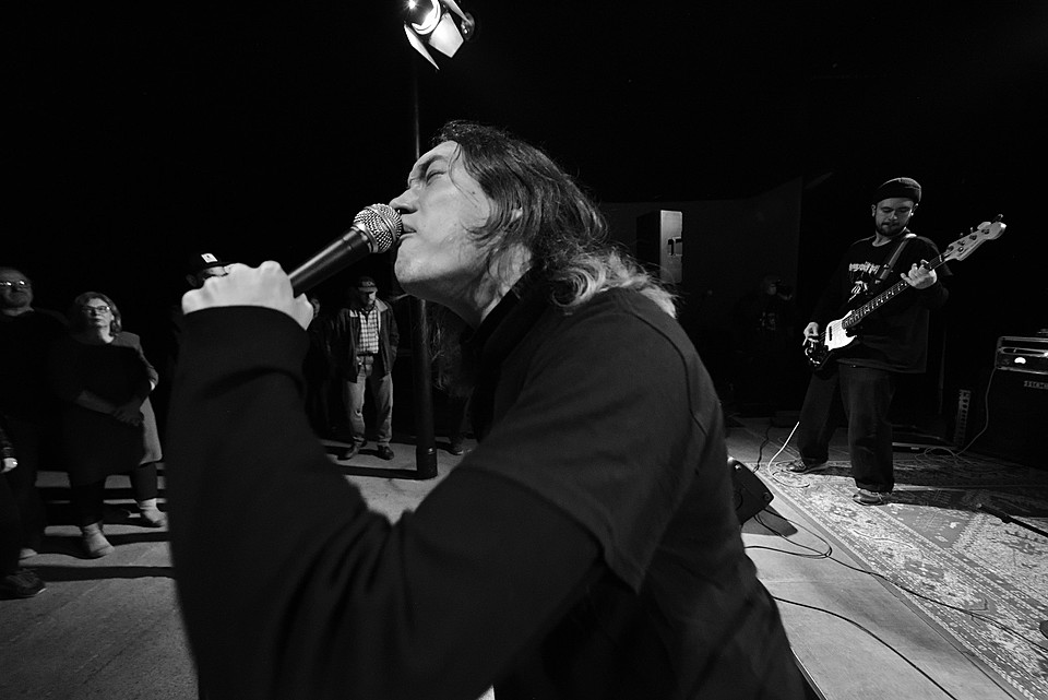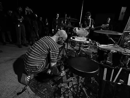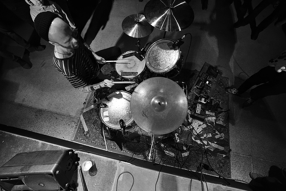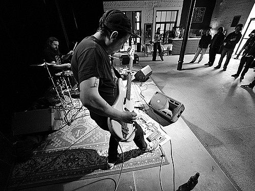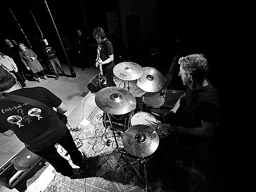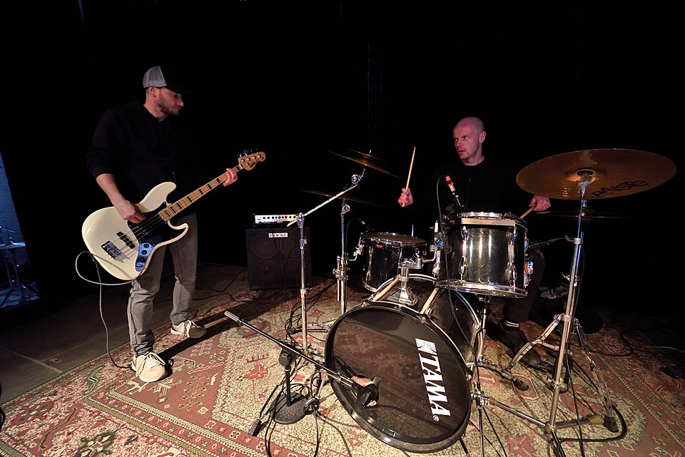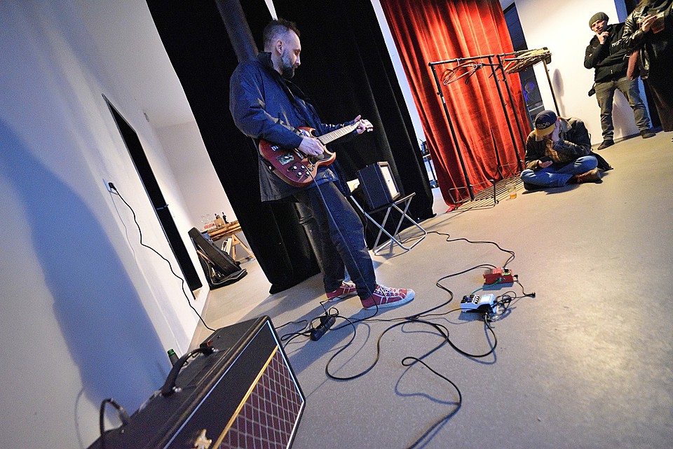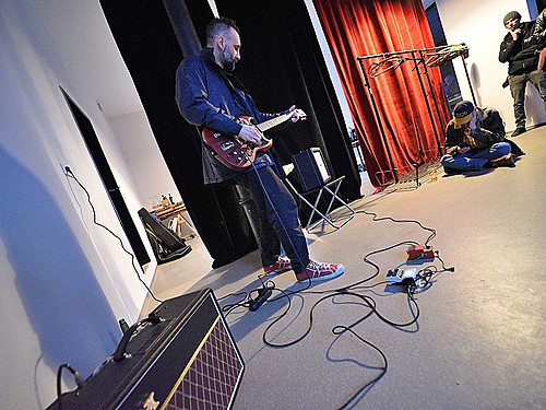Po dobu přípravy dalších kapel ze svojí elektriky vyluzoval ve vestibulu pochmurné repetitivní zvuky Filip Nový.