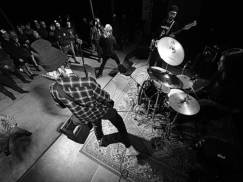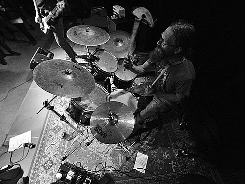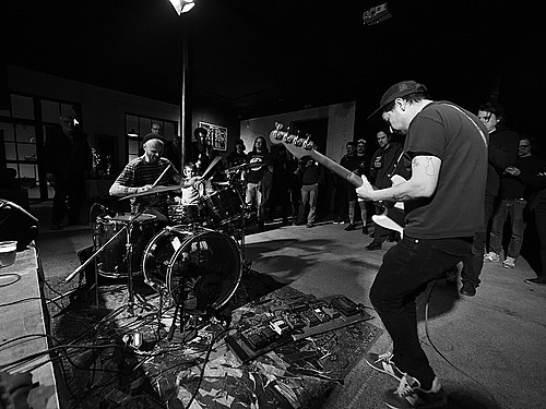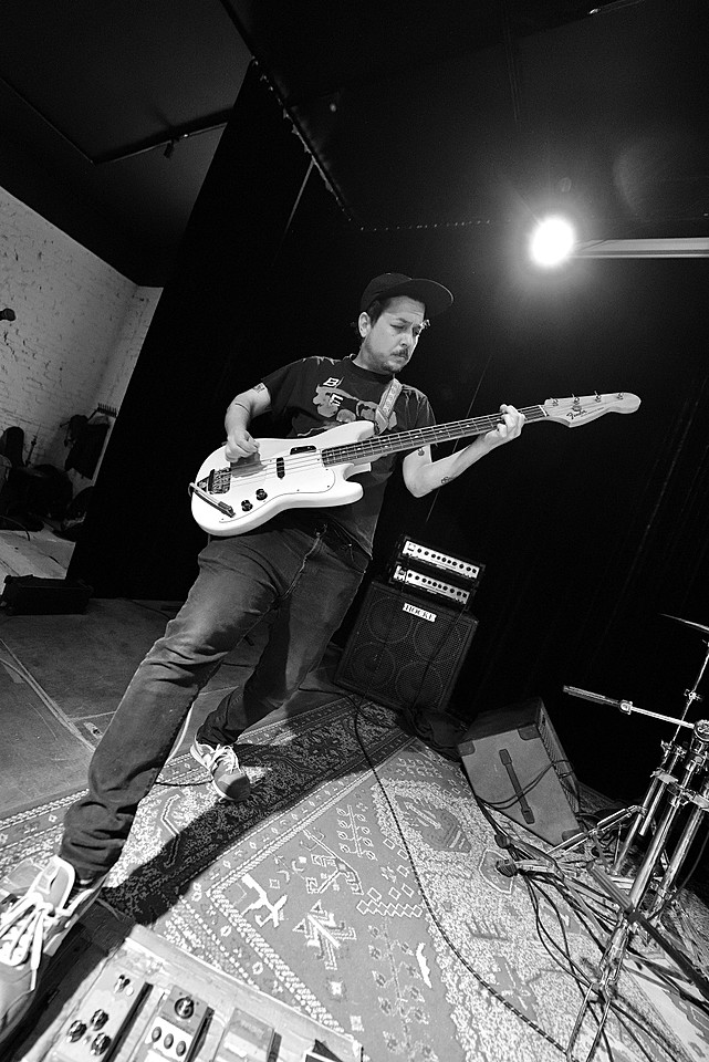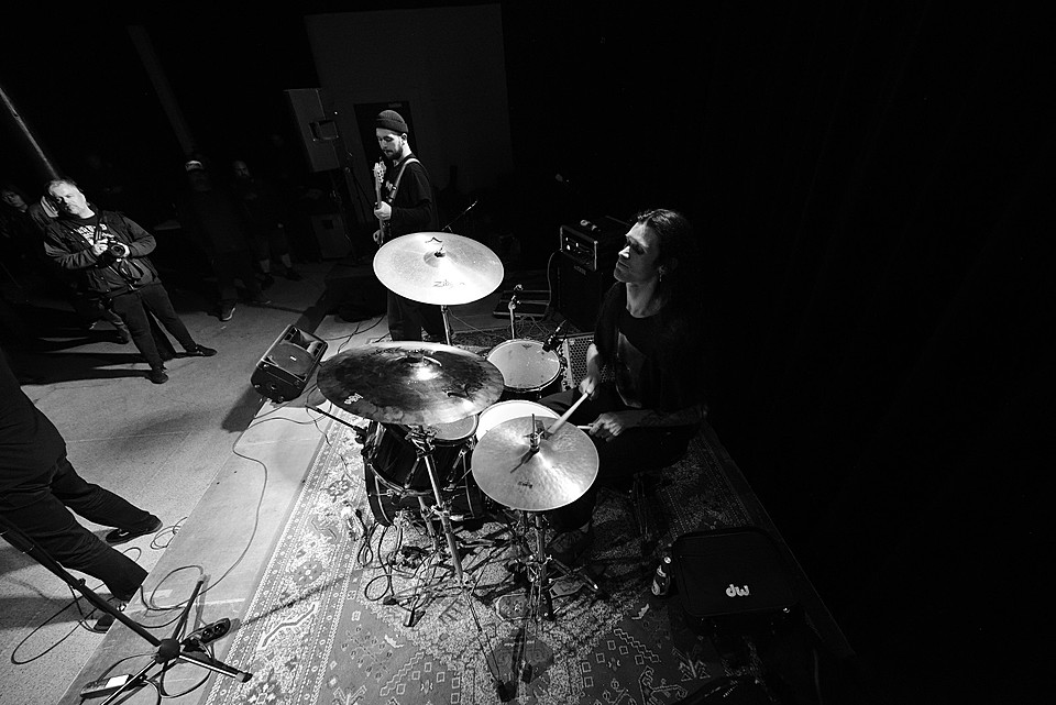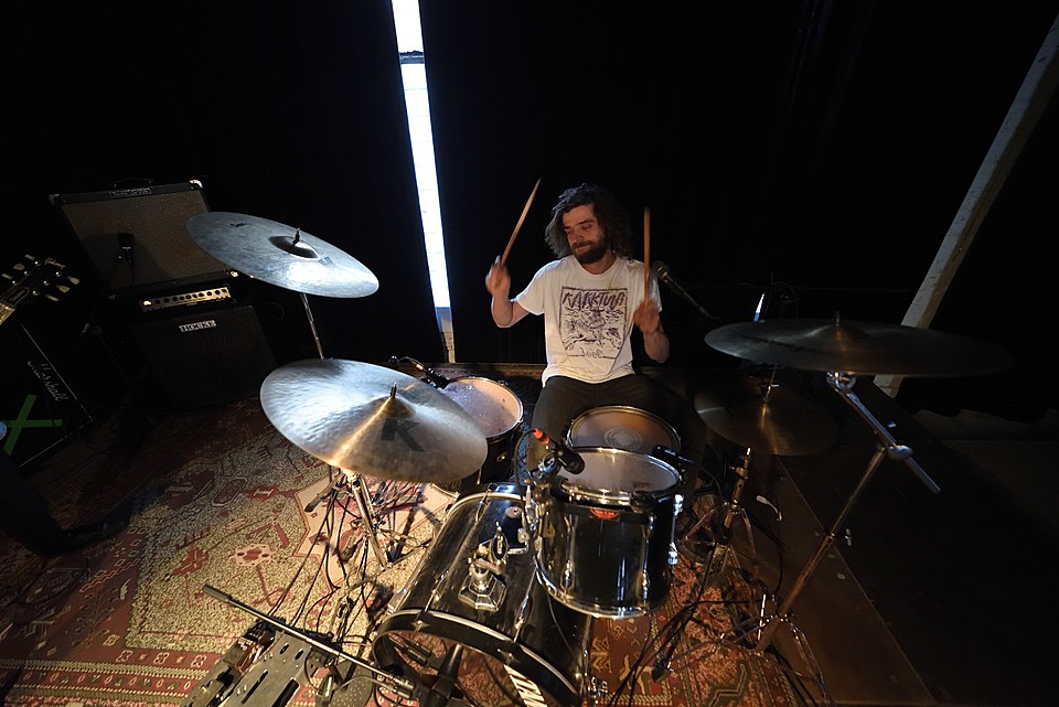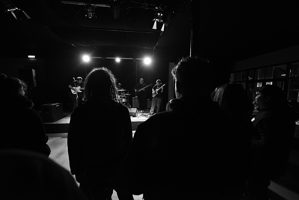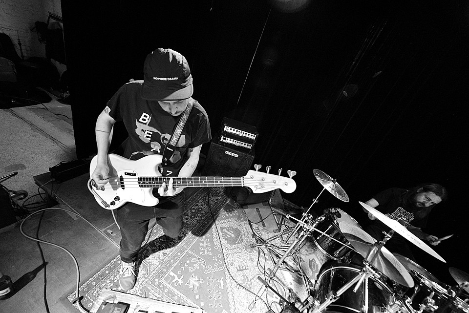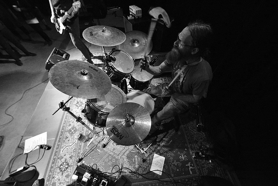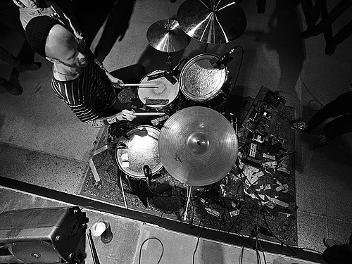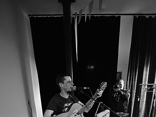 Po dobu přípravy dalších kapel ze svojí elektriky vyluzoval ve vestibulu pochmurné repetitivní zvuky Filip Nový.