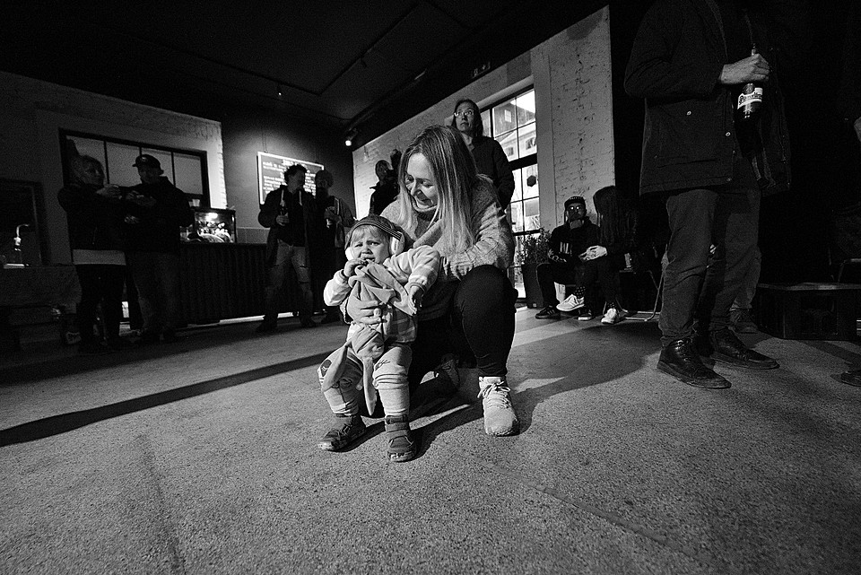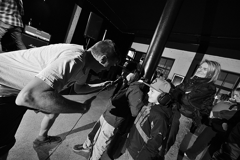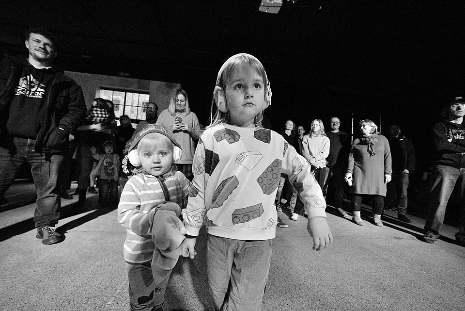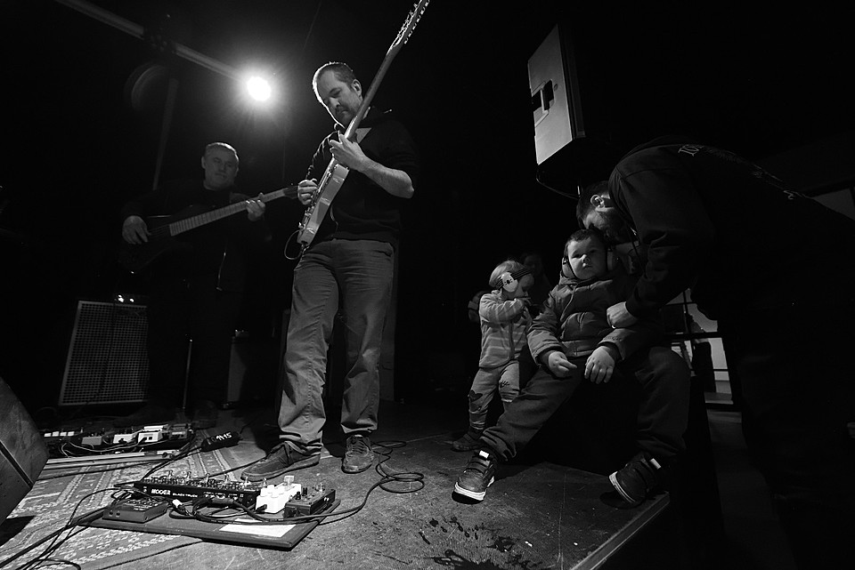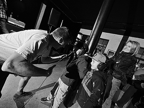 Každopádně co se týká návštěvy, bylo nás tak počítám 40, v průběhu dne možná 50. Což je návštěva, která vytváří mezi lidma docela znatelný mezery. Ty se snažili zaplnit všudypřítomní caparti s obrovskými chrániči sluchu. Vyzdvihnout se sluší dramaturgii, časovou dochvilnost, koneckonců i ty děti, které dodávaly akci domácí pohodu. Než zapomenu, o zvuk se starali Vlasta Marek a Štěpán Klučka (NIXON LADS).