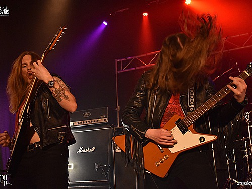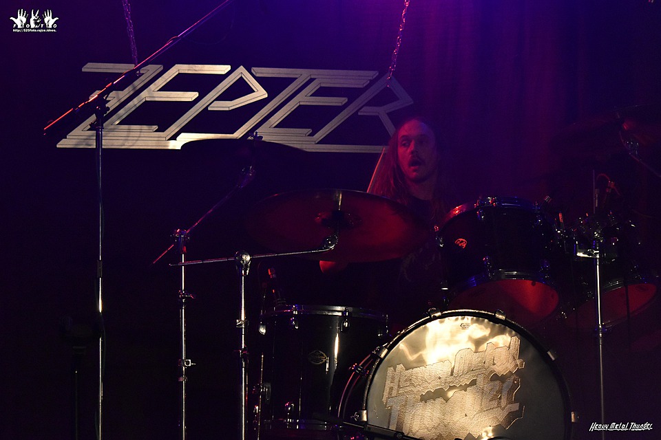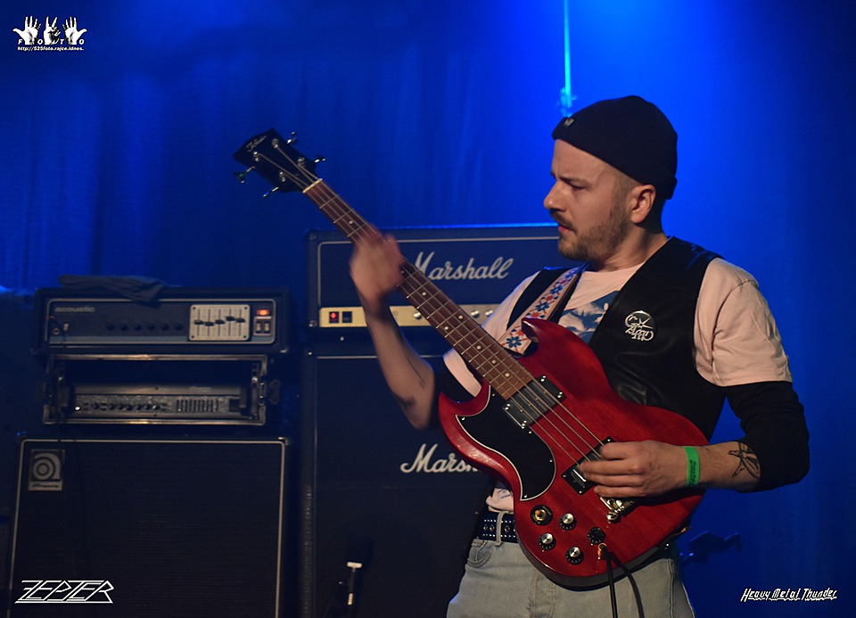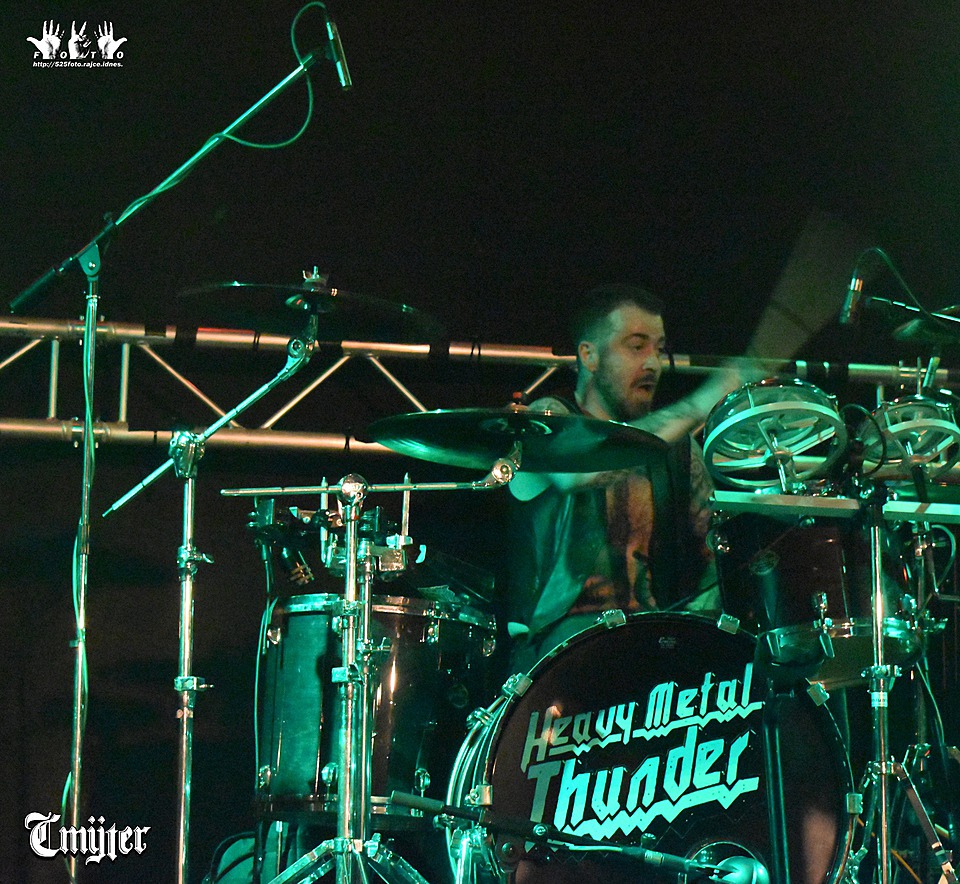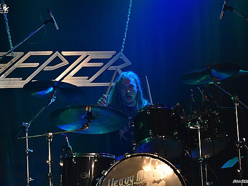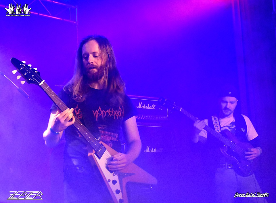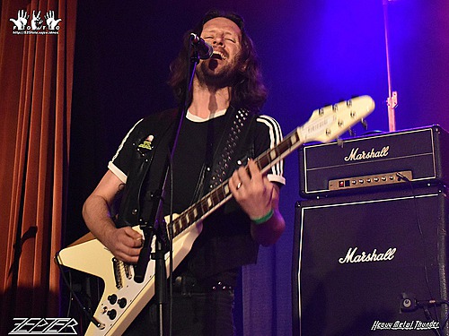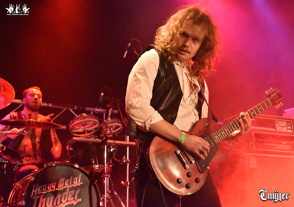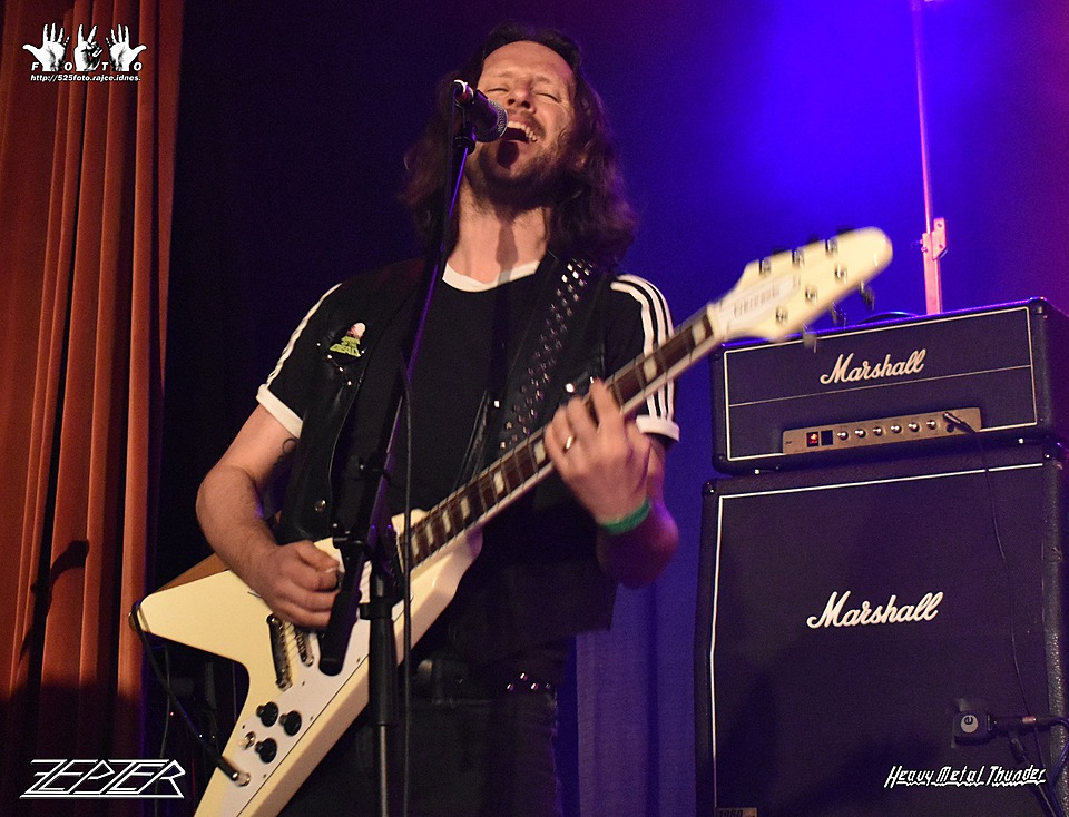 Je to tak, jak píše Johan. Ze setu CMŸTER jsem příliš nadšený nebyl. Slováci drtí své nástroje od minulého roku, proto mě několikrát napadlo, jestli trochu nedojíždí na menší herní praxi. Kytary byly asi OK, ale bicí nepříliš přesvědčivě držely všechno pohromadě. Pak se všechno sype. Do toho si přidejte atypické, skoro punkové, frázování a smíšené pocity z poslechu jsou na světě. Oceňuji odvahu a používání mateřského jazyka, ale s živou produkcí se na HMT mohlo počkat třeba o rok déle. Nicméně našli se fanoušci, kterým herní projev přišel sympatický, takže jsem možná jenom roura. ZEPTER nasadili laťku podstatně výše. Nic neošidili. Dokonce místo backdropu viselo na řetězech za bubeníkem kovové logo. Kvartet z Rakouska letos vydával debutovou desku. Sází na nostalgii nové vlny britského heavy metalu – takže festivalové sekery začaly řádně sólovat. Co možná trochu odlišovalo kapelu od ostatních, byl jemnější zpěv.