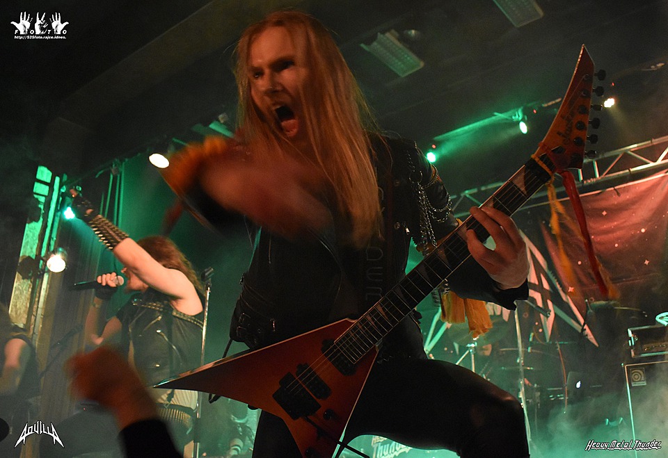 Dorazil jsem akorát na začátek setu polské skupiny AQUILLA. Nepolíben jejich tvorbou (z celého dvoudenního matiné jsem znal jedinou kapelu, PROCESSION) jsem se celkem rychle dokázal naladit na melodický heavy metal, který asi nezapřel vzory v podobě RUNNING WILD. Svižná muzika plná chytlavých partů, sólíček, prostě pastva pro heavymetalové uši. I pro oči, protože pánové se na pódiu nezastavili, koncert si užívali a našlapaný sál se snadno naladil na jejich vlnu. U heavy metalu je strašně důležitý zpěv; kapela se může přetrhnout, dělat parádní muziku, ale když nemá kvalitního zpěváka, který zvládá melodický zpěv na patřičné úrovni, nebude to nikdy ono. Poláci mají i v tomto směru trumf v podobě Captaina Paradoxe, jak si říká Kuczy Kuczyński, který prošel dalšími kapelami, kde nasbíral dost zkušeností, které dokázal „prodat“; navíc i on (kromě výborného zpěvu) přispěl k divočině na pódiu. Přesně takhle by měl vypadat HM set.