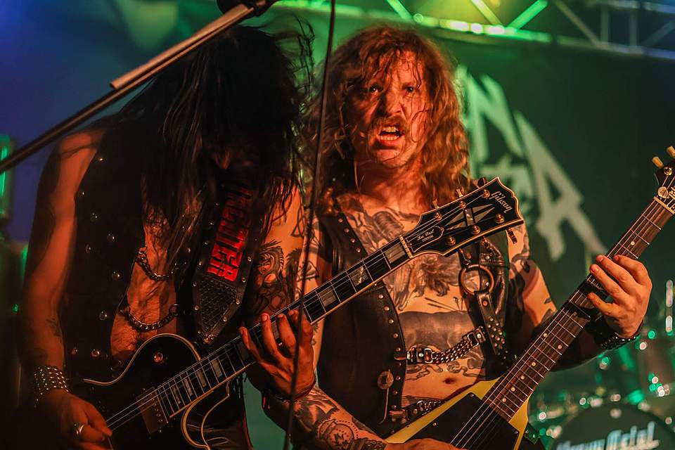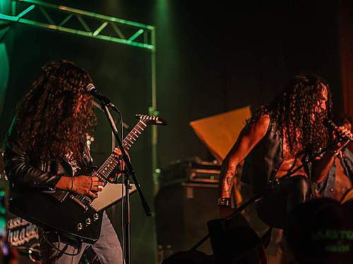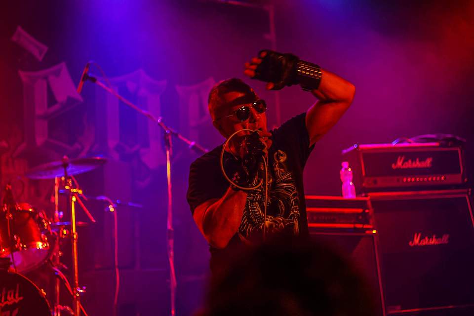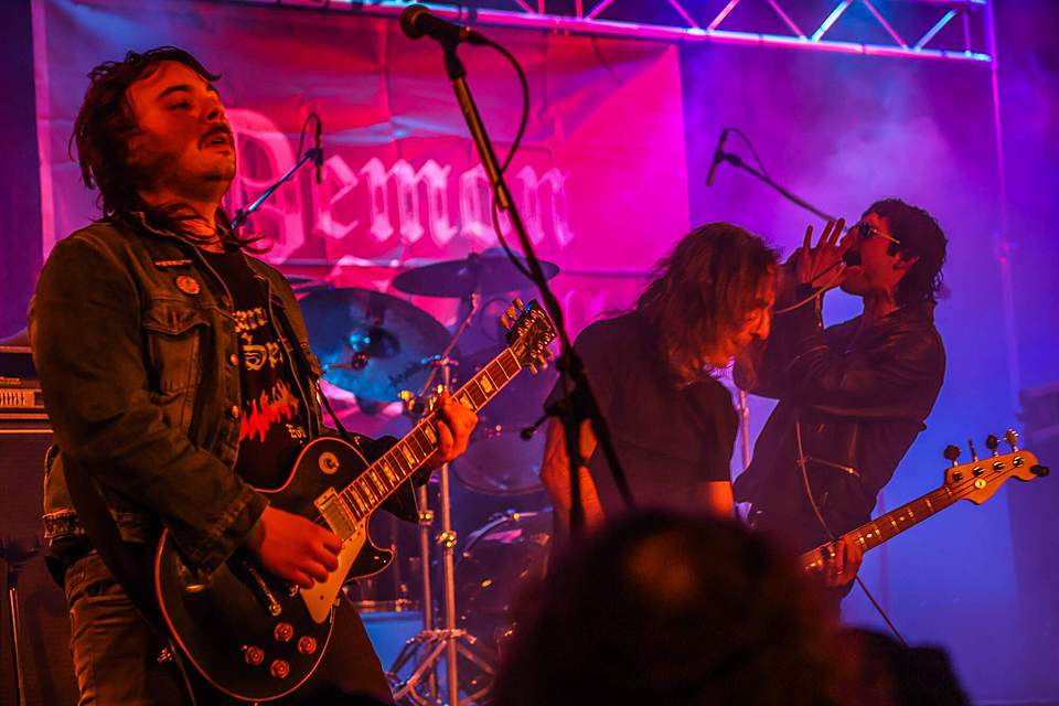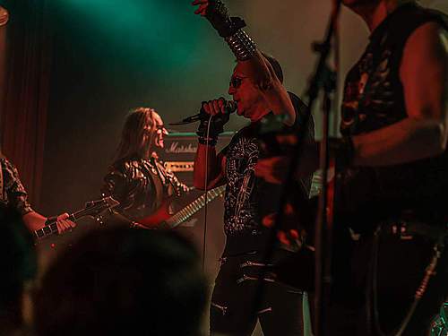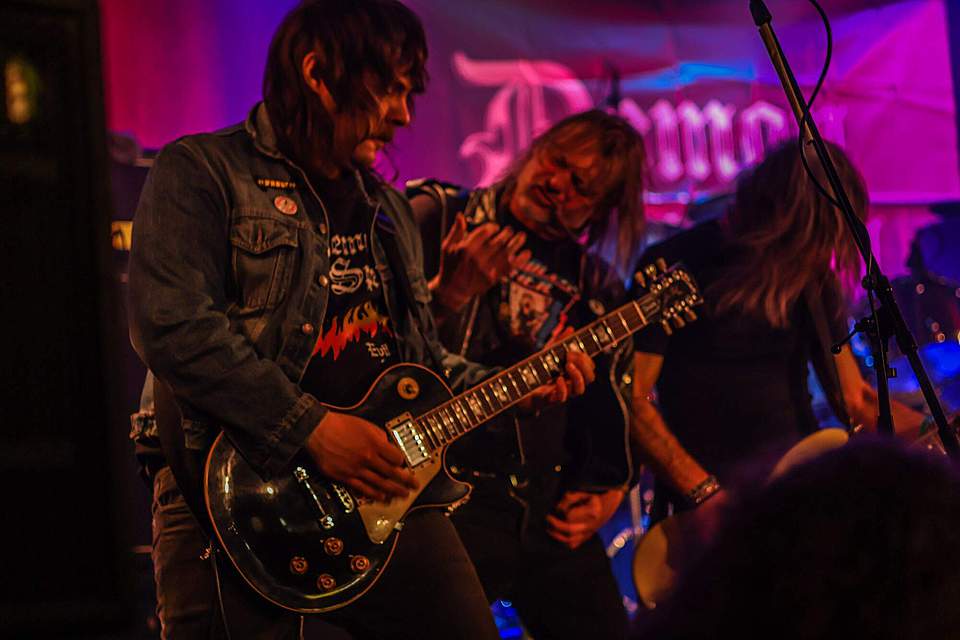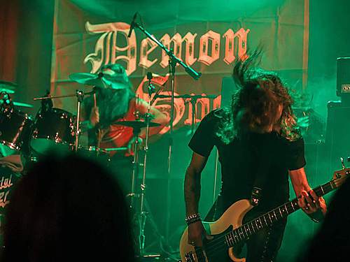 Sobotní program měl díky pestrému úvodu pořádný spád. I když šlo o dlouhou „šichtu“, dramaturgie nebyla na jedno brdo. První kapela byla temná, druhá skoro „růžová“ a třetí punkově divoká. DEMON SPELL hodně sázeli na okultní melodie a rozhodně nezapřeli, že jsou vyznavači rané tvorby KINGA DIAMONDA. Falzety a ječáky vše podtrhoval pěvec schovaný za černými brýlemi – fanoušci „Melissy“ od MERCYFUL FATE si zkrátka přišli na své.