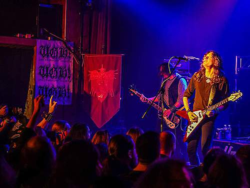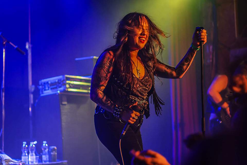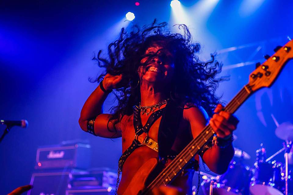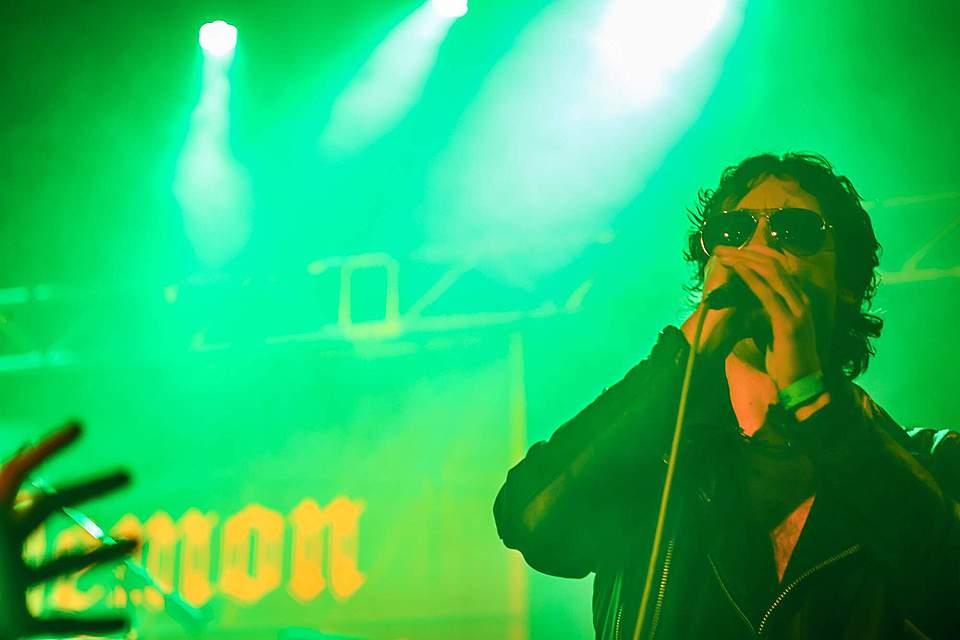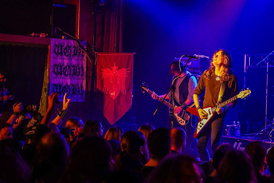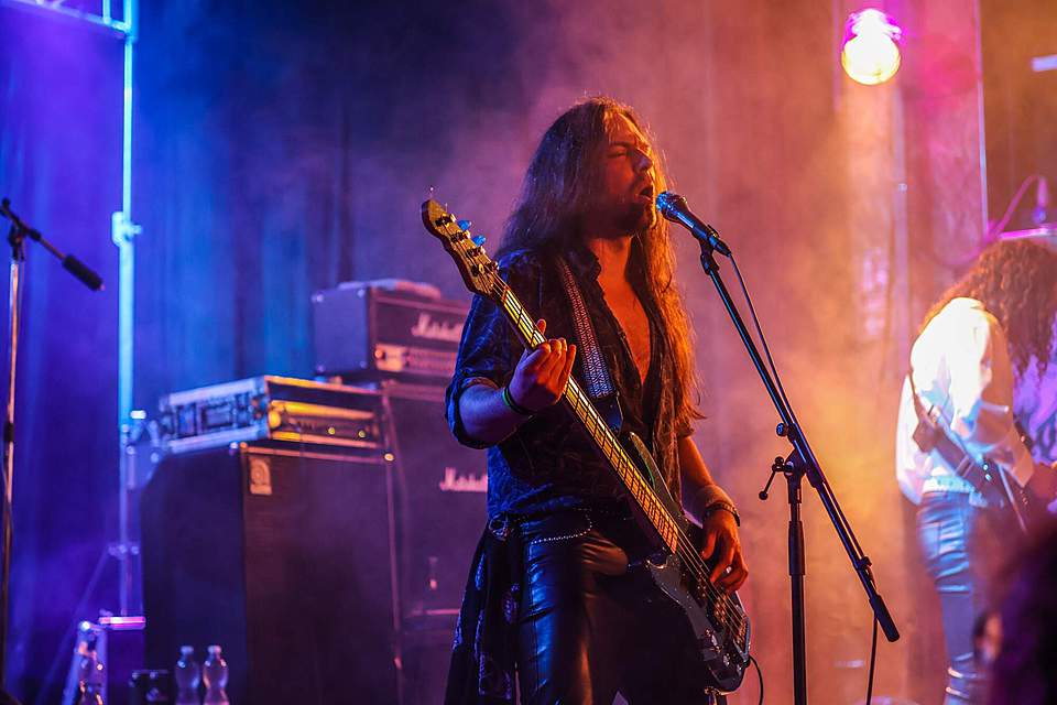 Sobotní program měl díky pestrému úvodu pořádný spád. I když šlo o dlouhou „šichtu“, dramaturgie nebyla na jedno brdo. První kapela byla temná, druhá skoro „růžová“ a třetí punkově divoká. DEMON SPELL hodně sázeli na okultní melodie a rozhodně nezapřeli, že jsou vyznavači rané tvorby KINGA DIAMONDA. Falzety a ječáky vše podtrhoval pěvec schovaný za černými brýlemi – fanoušci „Melissy“ od MERCYFUL FATE si zkrátka přišli na své.