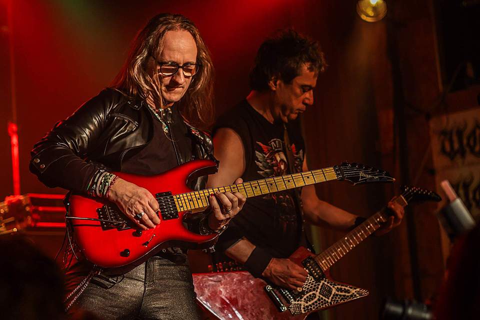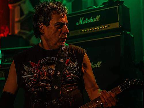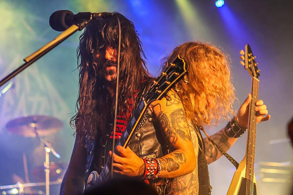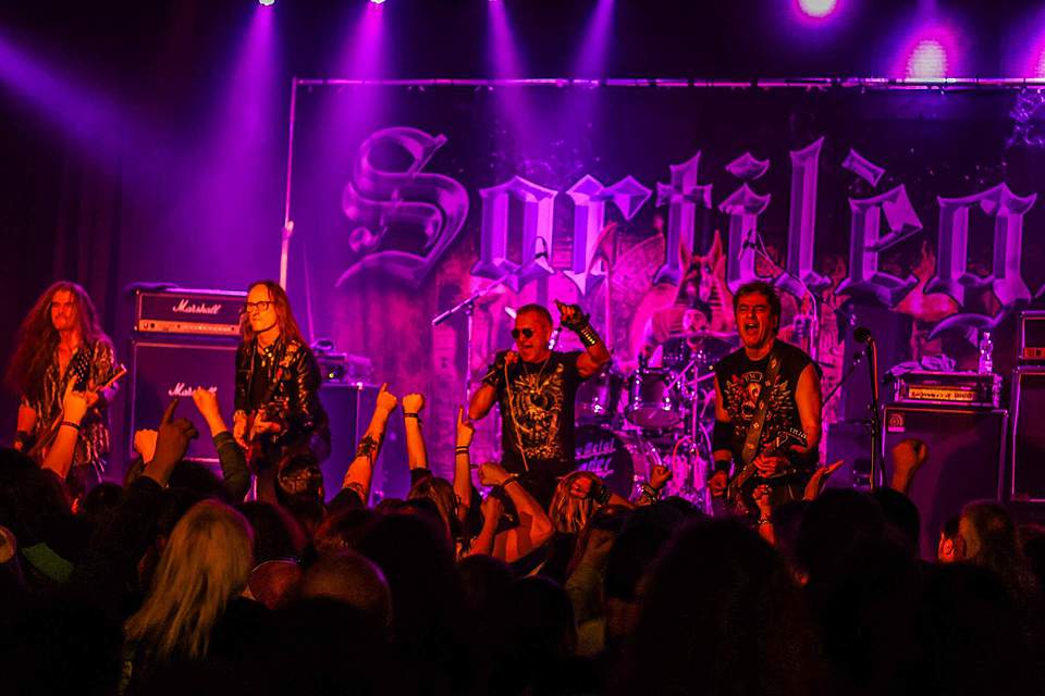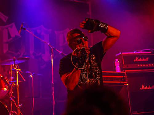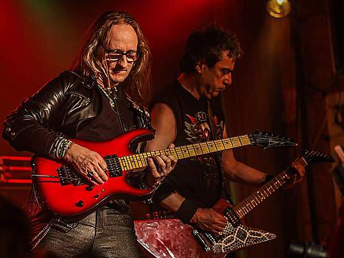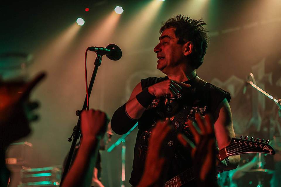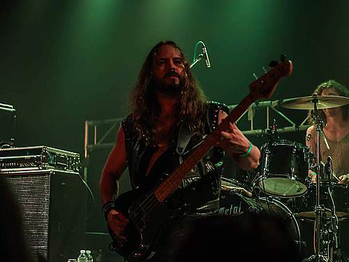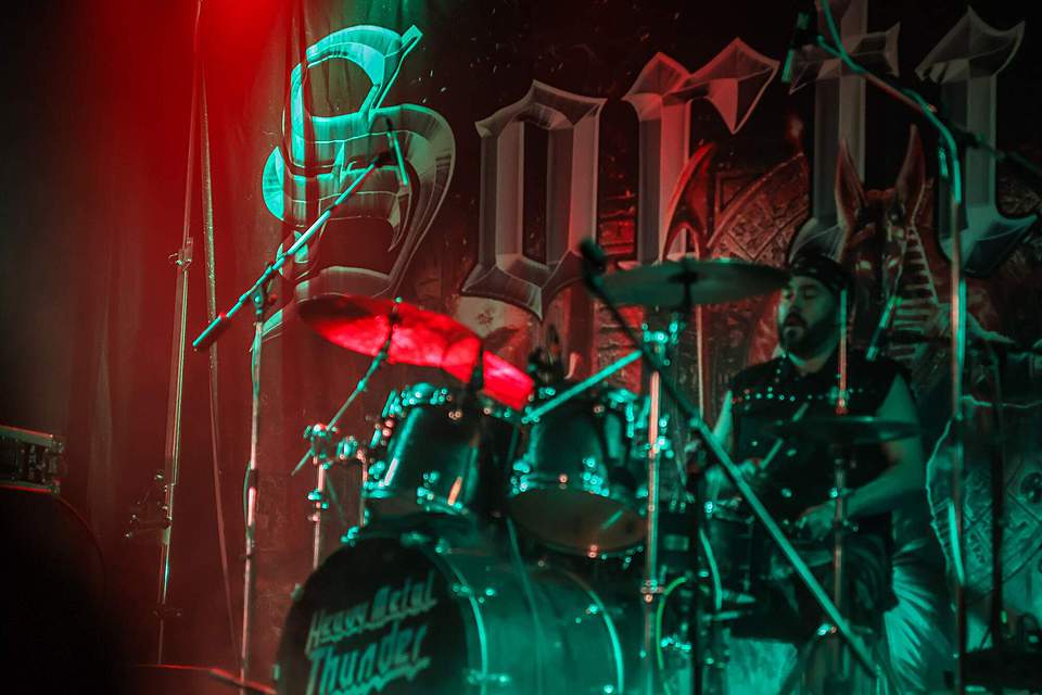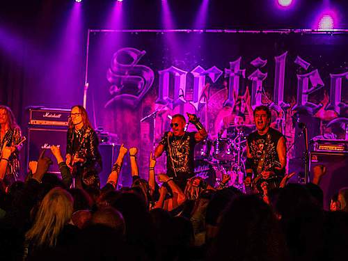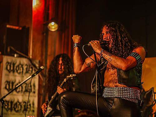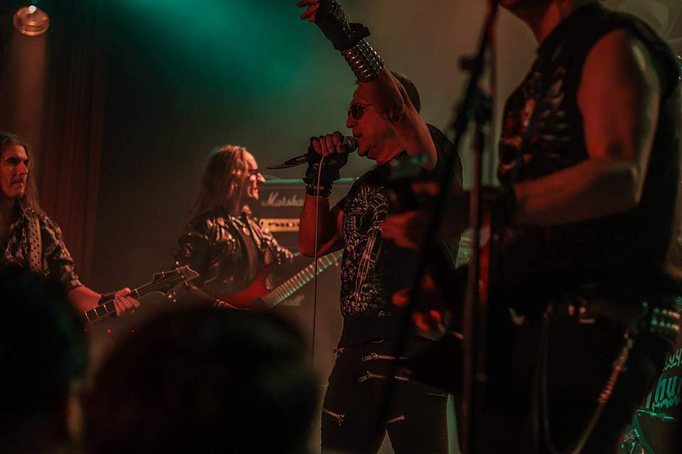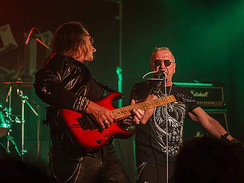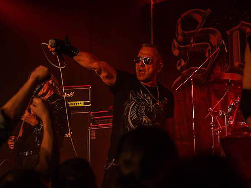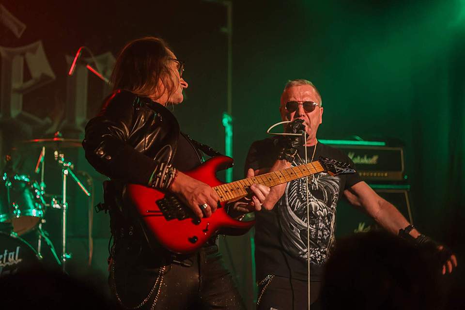 Tomu se nevyhnul další headliner, SORTILÈGE z Francie. Historie téhle kapely je nejen dlouhá, ale i zamotaná, nějakou dobu asi fungovaly dvě inkarnace pod stejným názvem, v každé nějaký původní člen, ale v současnosti už je asi aktivní jen ta pod vedením zpěváka Christiana „Zouille“ Augustina. Tomu je krásných 68 let a chtěl bych mít v jeho letech (pokud se jich dožiji) takovou kondici, jako tenhle sportovec. A nešlo jen o pohyb, který mu nedělal ani po sedmdesáti minutách na stage problém, ale i o hlas, který mu stále funguje výborně. Výborně to dávali i kolegové kolem něj, žádní zelenáči, ale zkušení muzikanti napříč generacemi. Jejich old school set, anoncovaný na plakátu, bavil, působil jako z učebnice heavy metalu, který obsahoval vše, co si fanoušci žádají – melodie, rychlé i pomalejší party, zmíněný kvalitní zpěv v různých polohách. Jen to bylo celé docela dlouhé… Myslím, že po hodině, kdy zazněla nejvíc epic věc s orchestracemi puštěnými ze záznamu, to mohlo monumentálně skončit, ale ne… Přitom už i fanoušci umdlévali, respektive hlediště lehce prořídlo, protože většina návštěvníků už toho měla za dva dny dost (i v žilách, úsměv). SORTILÈGE ale hráli a hráli, až jsme to po hodině a čtvrt vzdali a zamířili k domovu. Poslední věty prosím neberte jako nějaké stěžování si, kapela předváděla výbornou práci, to by mělo na závěr zaznít.