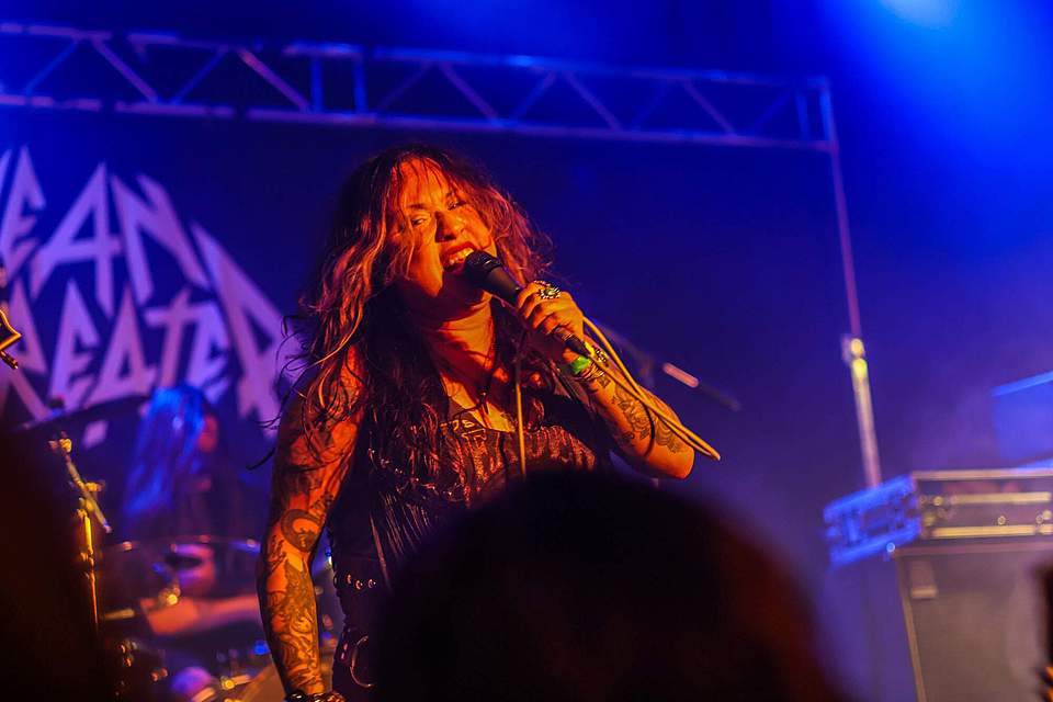 Američané a Američanka dorazili na poslední chvíli a šli z dodávky rovnou na pódium, kde se ctí zakončili své evropské turné. MEAN MISTREATER produkovali neokázalý zemitý ostřejší heavy metal s civilním zpěvem. Janiece se nepouštěla do míst, ve kterých by si nebyla jistá a držela se středních poloh. Na členech kapely nebyla znát únava ani stres z komplikovaného přesunu z předchozí štace a energií rozhodně nešetřili. V tomto směru překvapivě vyčníval bubeník, který předváděl pěkné rodeo, neustále mlátil vlasatou hlavou, protáčel paličky nebo je „zkoušel překousnout“. Přes vlasy většinou asi nic neviděl, ale to mu nebránilo v plnohodnotném výkonu. Čtyřicet minut bylo tak akorát, aby koncert neztratil drive.