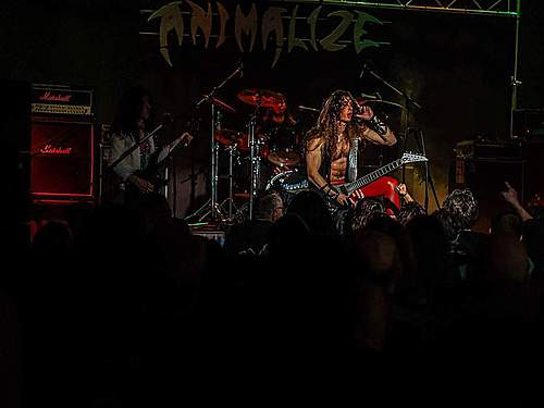 Naplánoval jsem příjezd tak, abych viděl kapely, které se nějak vymykají, v případě na 18. hodinu naplánovaných MEAN MISTREATER mělo jít o ženský zpěv, první na letošním Thunderu. Leč když jsem přesně podle plánu v 18 hodin nakráčel do sálu, nad kapelou viselo logo ANIMALIZE a na pódiu se pohybovali čtyři spoře odění pánové. Takže jsem zapátral v mobilu a ejhle, změna programu, výměna slotů. Kvůli potížím na cestě nestihli MEAN MISTREATER přijet včas, a tak se měnilo. Nikoliv délky setů, ANIMALIZE měli na své vystoupení padesát minut a ty dostali i o hodinu dřív. A využili je naplno k výbornému vystoupení. Šťavnatý heavy metal s prvky speedu i hard rocku dávali Francouzi s elánem a grácií, kromě skutečně kvalitní melodické a vesměs rychlé muziky zaslouží pochvalu i čistý zpěv předáka (zároveň basáka). Texty ve francouzštině taky sehrály roli, bylo to v tomto směru originální, oči přítomných pak kapela potěšila i divadýlkem s katanou a podříznutím jednoho z kytaristů (nechyběla ani „krev“) nebo motorovou pilou, jež vykonala další exekuci (na rozdíl od DEBUSTROLU ji pánové neměli nastartovanou, úsměv).