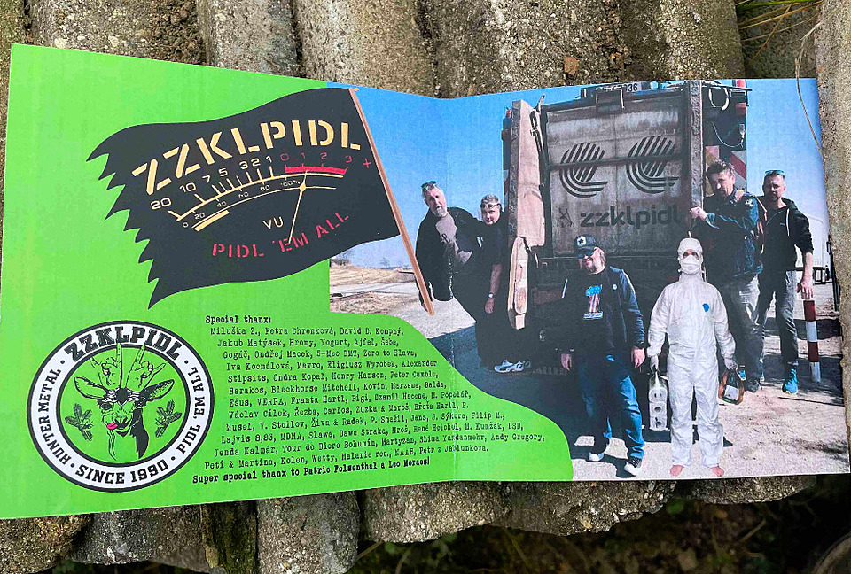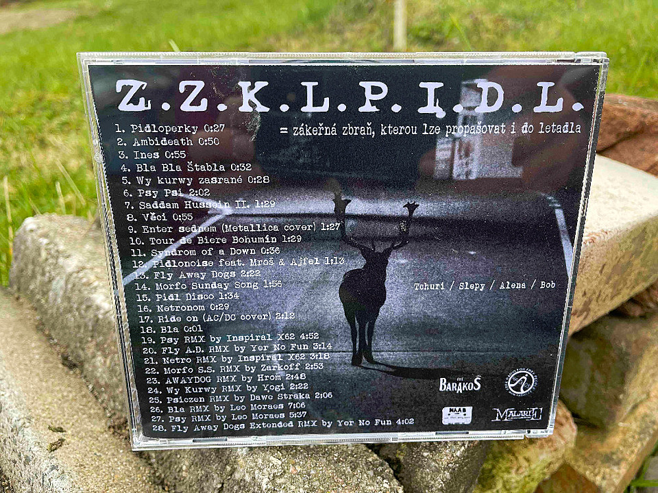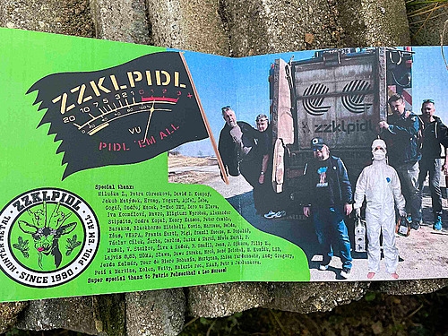 ZZKLPIDL tvoří kytarista Alena René Horníček (VERPA), kytarista Robert Bob Lidmila (ex-VERPA), bubeník Tom Rex Flyaway (ex-SULTAN SOLIMAN), zpěvák Tomáš Slepy Heczko, kytarista Martin Tchury Vrubel a baskytarista David D. Kempný. Hudební DIY koláž „Krupobití až do kurevpění“ vznikla během covidu a jak tak hoši postupně přidávali na hudební platformy nové singly, rozhodli se tenhle vakcínový koktejl vydat na MC (70 ks), CD (50) a LP (295). CD, které se ke mně dostalo, obsahuje celkem 28 roztodivných tracků, převážně remixů, výkřiků, nějakou tu obscénní (?) polštinu, kterou v Bohumíně vládne kde kdo, temný ambient, intermezza, noise nebo drum´n´bassové zvukové stěny. Pro doplnění, na Spotify najdete pouze 21 těchto vylomenin. Pokud byste při poslechu nabyli dojmu, že už jste tuhle či onu smyčku, sampl, riff někde slyšeli, tak nemáte halušky ani nejste psychicky přetaženej. Na béčku jsou remixy, o který se podělili různí hosté a kamarádi. Jedná se o remixy skladeb, které jsou (v případě LP) na áčku. Tady se meze jisté vypočítavosti nekladou a dle mého to není vůbec hloupej nápad. Ke spolupráci ZZKLPIDL oslovili pár kamarádů – Yogiho z polských SMAR SW, TOWOT, THCUlture, amerického rapera APOC, ze Slovinska Sašu (ZARKOFF), z J. Hradce Hromyho (VEENA, FIVE SECONDS TO LEAVE, NÁV), Inspirala X 62 (KMENY), Radima Vaňka (MROŠ AND THE VOICES) nebo Romana Widenku, se kterým bylo domluveno také finální míchání. Ten bohužel nečekaně zemřel, a tak studiovou práci dodělal Ondřej Ježek (studio Jámor).