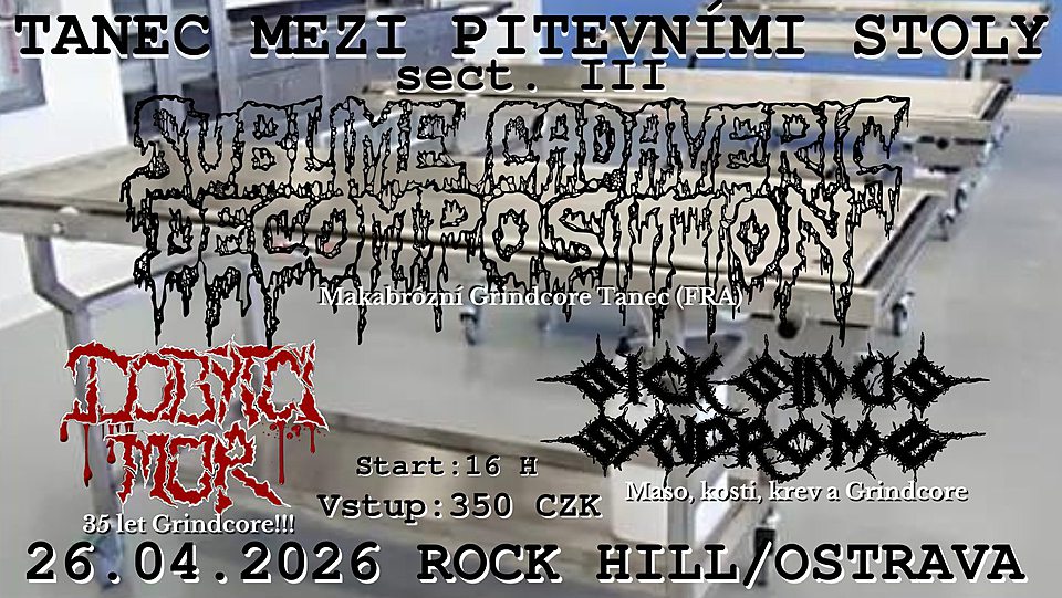 Headlinery akce jsou Francouzští drtiči SUBLIME CADAVERIC DECOMPOSITION, vzniknuvší v roce 1996 a myslím, že v Ostravě budou hrát úplně poprvé!!!
