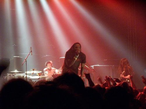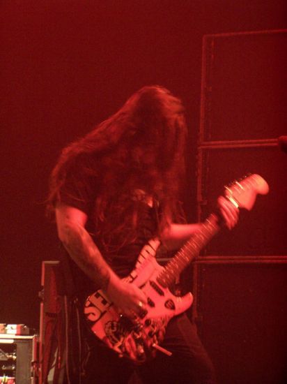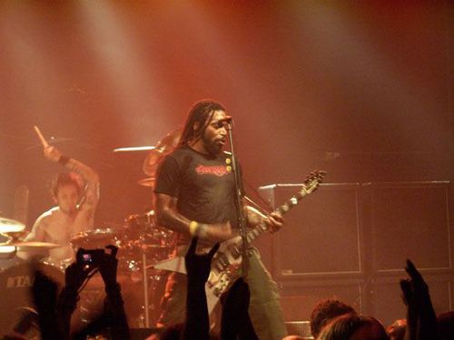 Nakonec, chvilku po 19-té hodině, je možné začít a s velkou sebedůvěrou zdraví fanoušky první kapela, jejíž název jsem do poslední chvíle neznal. DAGOBA, tak zní jméno francouzské kapely, která byla zvolena, aby doprovázela 2 velikány na evropském turné. Přiznám se, že jsem DAGOBU slyšel úplně poprvé a mile mě překvapila. Moderní thrash metal s příměsí HC-čka a dalších stylů byl pro mě lehce stravitelný, celkově nadupaný a velmi energicky podaný. Kapela působila hodně profesionálně a nenechala nikoho na pochybách, že doprovází IN FLAMES a SEPULTURU na turné právem. Neodolal jsem a navšítivil jsem oficiální web, abych si poslechnul studiovou ukázku. Přiznám se, že ta už na mě nepůsobila tak přesvědčivě. Ale nenechal jsem si tím zkazit dojem živého vystoupení, který rozhodně nebyl zanedbatelný.