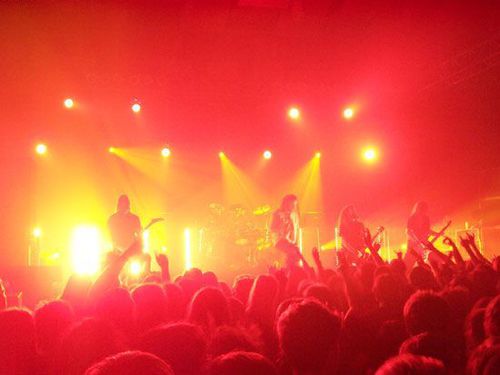 IN FLAMES. Těžko říct, jestli dnes existuje metalový fanoušek, který by tuto kapelu neměl rád, a doma nehýčkal minimálně jedno z jejích osmi alb. Po SEPULTUŘE je nutné se osvěžit a připravit se na pořádné peklo. Pódium je podrobeno řádné přestavbě a aby technikům nikdo nekoukal pod ruce, je pěkně zahaleno bílým závěsem. Po deváté hodině se zdá být vše připraveno a show může začít.