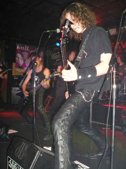 Ale ouha – v sedm večer, kdy festival oficiálně začínal, se v tmavých koutech rozlehlého klubu ukrývalo sotva několik desítek návštěvníků a první kapela v pořadí, kterou byli právě švýcarští Firesnake, si tak v klidu odzkoušela nástroje a vzhledem k aktuální návštěvě se raději rozptýlila u baru a v temných útrobách prostoru pro účinkující. Klub se plnil jen pozvolna, přesto zahajující kapela o důstojnou atmosféru nouzi mít neměla – součástí švýcarské výpravy byla totiž i početná skupina vlastních fans, a tak když FIRESNAKE s více než hodinovým zpožděním fest nakonec odstartovali, nadšený jásot se dostavil téměř okamžitě. Na pódiu se nám představila šestičlenná skupina, které kromě klasického nástrojového obsazení (s oddělenou rytmickou a sólovou kytarovou sekcí) nechyběly ani klávesy v podání jednoho ze služebně nejmladších členů kapely (Moritz). Ale zpět k hudbě – kapela pod vedením „šéfa“ Jonase (zpěv) na shromážděné obecenstvo vyrukovala se svým old school power metalem, který se střízlivě držel ve středních tempech, z nichž se často vyklubalo rychlé kytarové sólo či nářezovější thrashová pasáž s typickými odrazy. Bohužel, nechyběly ani některá stylová klišé v podobě nejrůznějších siláckých póz a grimas těchto velmi mladých muzikantů (ovšem my blacku holdující máme co mluvit, že…). S výkonem Firesnake to bylo vůbec hned nahoru a dolů. Pod vlivem stále rostoucího ohlasu velice dobře pracovaly kytary, které díky pořádnému přebuzení zcela upozadily klávesáka i méně jistého basáka a společně dávaly zabrat síle hlasivek charismatického zpěváka, který se jinak vcelku profesionálně postaral o show a komunikaci s publikem. Více jak hodina hry vyplněná skladbami z chystaného debutu (No Time, My Pain, Man of Shadows, Inside Me, Angel of Tears, atd.) nakonec uplynula a na konci vystoupení se sálem neslo sborové skandování žádající si o přídavky (vzhledem k aktivitě švýcarských fandů nebylo třeba dlouho hledat původce) – ty nakonec přišly a klubem v rámci nášupu zazněla nostalgická hitovka The Trooper od kultovních Iron Maiden. Mno, i přes některé mouchy to byl docela obstojný začátek…