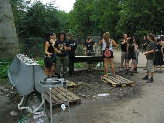 Ulice jsou totálně napraskaný autama, stany kromě kempu stojí i na různých paloukách, mezi stromama a dokonce na náměstí. Odhady hovoří zhruba o 12 000 návštěvníků. Jejich hladové žaludky mají na výběr z hodně pestré nabídky, kromě klasických klobás či steaků nabízí místní občerstvovací stanice další desítky pokrmů, od pizzy, hranolek, nudlí přes bramboráky po koblihy a další spousty pokrmů, např i mexická kuchyně. Fronty byly zatím v pohodě, čekání v řádech pár minut. Výčepů piva je také několik, kromě areálu i v kempu či na přístupové cestě. Někde se čeká déle, ale kdo trošku zapřemýšlí, zamíří na periférii a prakticky bez čekání bere pivo a navíc je obdařen úsměvem dvou rusovlásek. (Johan) Musím přitakat a poznamenat, že co se týče některých služeb, tak se letošní Brutal vylepšil. Ať už je to pestrý výběr občerstvení, tak i například pravidelně čistěné WC a hlavně noční úklid areálu, takže se už návštěvníci nebrodí odpadky, jako např. vloni. Možná jen kapacita kempu je malá a stany stojí i mimo vyznačený prostor. Pokud se bude příští Brutal konat také v Josefově, chtělo by to kemp rozšířit. Zde je ještě nutno poznamenat, že co se týče hygieny, tak se BA stále potýká s nedostatkem korýtek s tekoucí vodou, obzvlášť jejich absenci v kempu beru jako velkou chybu. (Márty)