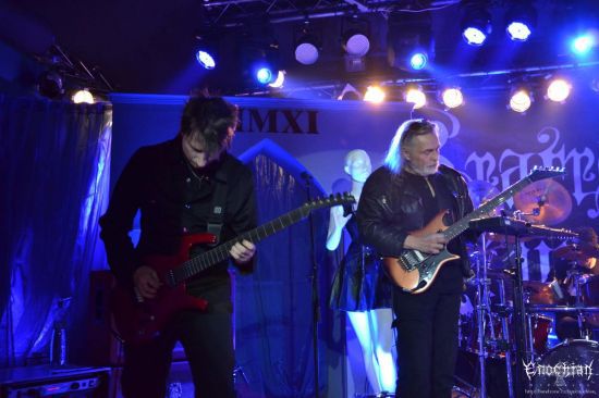 Ten začal kolem 21. hodiny. Pódium připomínalo divadelní scénu – kulisy, plachty s motivem z obalu a brána opatřená římským letopočtem 2011 oddělující dva světy, ten „ante portas“ a ten „za branami“. Před bránou se objevil R. X. Thámo, který koncert zahájil a pak se k němu připojili Lord Darkthep (kytara), Kobdzey (bicí), Maestro Xpíl (zpěv), Haik (baskytara) a Piotr (kytara) a začalo představení, při kterém zazněly všechny skladby z novinky a došlo i na několik songů z předchozí nahrávky Goethit (Tělo je chrám, Stín nad Toledem, Volání mrtvých básníků a Karneval recyklovaných halucinací). Nebudu tady popisovat jednotlivé skladby, o těch starších si můžete počíst v recenzi na Goethit, o těch nových zanedlouho v chystané recenzi na La Lobu... Jednu událost ale zmínit musím, protože doplňuje mozaiku, kterou Bratrstvo Luny postupně skládá a kvůli které mám tuhle družinu rád. Je to taková sympatická posedlost dělat věci naplno a netradičně. O co jde? O speciálního hosta nejen CD, ale i koncertu. Je jím norský kytarista Petter Pluto Guthe, který na La Lobu... nahrál kytaru ve dvou skladbách a světe div se – přiletěl kvůli koncertu z Norska. Odhadem šedesátiletý muzikant s šedivou kšticí a plnovousem si v „řádné hrací době“ střihl kytarový part v naléhavé kompozici Továrny na smrt – Auschwitz-Birkenau a byl to parádní zážitek. Stejně jako vlastní křest... Kdepak obligátní šampus... Kmotr Monte to vymyslel jinak a svérázně – na svých toulkách za vlky nabral vodu z potoka, ze kterého vlci pijí a touhle vodou byl překrásný komplet (2CD, digibook v přebalu) „polit“. Další důkaz jedinečnosti Bratrstva Luny na tuzemské scéně. Po základním setu následoval třískladbový přídavek, v jehož rámci zazněly Nomen Rosae a Fantasmagorie (v níž opět vypomohl Pluto) z debutového dema Gotická duše. Dvouhodinový koncert měl zvláštní podmanivou atmosféru, kterou umocňoval R. X. Thámo hereckými kreacemi, samozřejmě muzikanti výbornými výkony, Xpíl procítěným zpěvem a zvukař (Matin Pošta) vycizelovaným zvukem. Jediné, co trochu zamrzelo, byl podle mého neadekvátně nízký počet diváků, odhadem něco málo přes stovku.