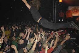EXHUMED (Usa) Ano, géniové gore metalu se vracejí ma místo činu!!! V roce 2001 jejich show málem překazila bouře, ale přesto předvedli co známená Saw Is The Law!!! Minulý rok přišli na trh s novou fošnou a ANATOMY IS DESTINY je dle mě album roku a jedna ze skutečně perfektních nahrávek extrémního undergroundu...skutečně nemusíme vůbec smutnit po božských CARCASS, protože tahle kapela je maximálně nahradila...argh!!!