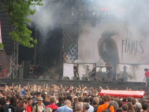 Následující IN FLAMES pro mne byli velkým lákadlem festivalu, zvláště poté co jsem zjistil, co budou hrát Ironi, tak snad IN FLAMES byl hlavní důvod, proč jet na Sonis. Co bylo hned od začátku patrné, bylo velké zvukové zlepšení. Hned jako první Cloud Conected z již téměř 9 let starého vynikajícího alba Reroute to Remain a pokračování ze stejné desky ještě i Triggerem = bomba. Z předposlední desky A sense of Purpose zazněl Alias a Disconnected, z Come Clarity zase úvodní pecka Take this Life. Hrálo se i pár nových ochutnávek z tehdy ještě nevyšlého nového alba a ty dávaly znát, že posun nebude tak výrazný, nicméně byly kvalitní a tu desku musím brzo někde sehnat. Pro mně byli IF zatím jasným vrcholem festivalu a málem zůstalo pouze u nich, nicméně já jsem letos zázraky opravdu něčekal.