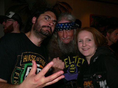 No, nedá se nic dělat, vše jednou končí, jako koncert SAINT VITUS, jenže ještě není konec. Teď sice už muzika nezněla, ale nálada večera se přelila do drobných rozhovorů s jednotlivými muzikanty a fotilo se, každý s každým, a podepisovalo se, a úsměvy vzájemné sympatie. Obdivuji tyto pány, já bych tohle nasazení nevydržel fyzicky ani tři dny. Skvělé. Skvělé!