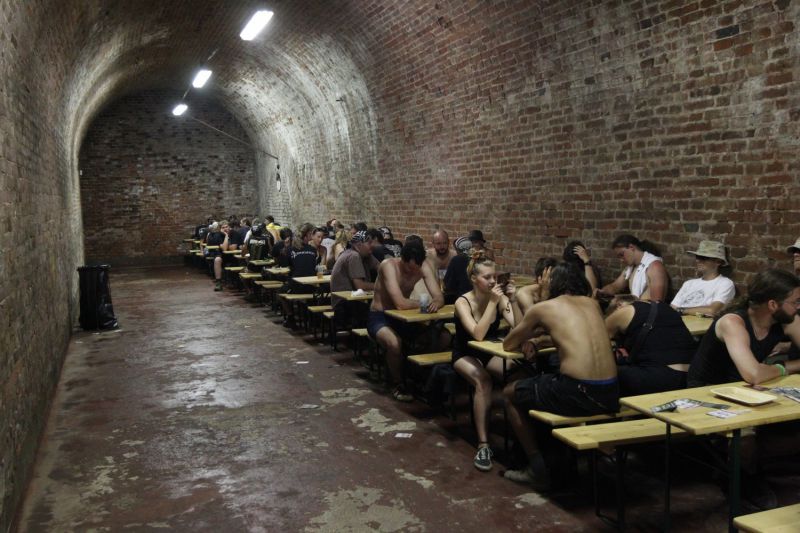Na první pohled zůstalo vše dobré z minulosti při starém, možná ještě přibyly lavičky na dalších místech. Již loni fungující kasemata byla opět hojně využívána jako úkryt před slunečním svitem, uvnitř byly i výčepy, monitory, na kterých bylo možno sledovat dění na pódiích... Perfektní, i když postupně i zde teplota stoupala a v sobotu už to bylo i poměrně „navoněné“ od rozlitého piva. Objevily se další drobnosti, které zmiňujeme pod jinými písmeny...