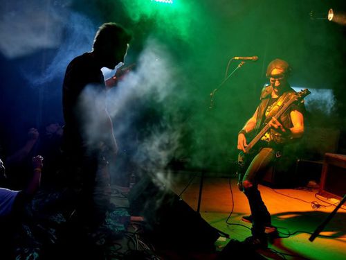WELICORUSS patří respekt za to, že i v horkém vzduchu nerezignovali na kostýmy a kožešinové doplňky a tak se museli doslova koupat ve vlastním potu, protože navíc nešetřili pohybem. Nešetřili ani spoustou muziky pouštěné z playbacku, což je dnes žel věc běžná i u velkých zahraničních part... i na Brutalu to takhle dělá kdekdo. Mně to moc po chuti není, neřeknu, když jde o nějaké dokreslovačky, ale v případě rusko-srbsko-české kapely jela z noteboku většina toho, co pak lezlo mezi lidi, včetně doprovodných vokálů. Jinak hudba WELICORUSS je žánrově mimo můj zájem, nebaví mě, ale evidentně jsem v menšině, protože za celé odpoledne měla právě tahle parta u publika největší úspěch. (Johan)