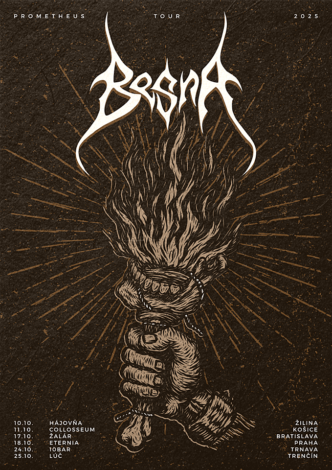 Bratislavská post-blackmetalová kapela BESNA sa v spolupráci s Pod Povrchom bookings v Októbri vyberie na klubové turné, ktorým pokračuje v podpore svojho ostatného, skvele prijatého albumu “Krásno”. Ten kapele priniesol aj vystúpenie na tohtoročnom festivale Brutal Assault. Prometheus Tour, ktorého názov je inšpirovaný textom k skladbe “Bezhviezdna obloha” práve z novinkovej nahrávky, sa pozrie do 6 klubov na Slovensku a v Česku. Koncerty BESNY sa vyznačujú kombináciou silnej atmosfery a vysokého nasadenia i energie, ktorú si kapela rada vymieňa s publikom. Diváci si po svoju dávku budú môcť prísť do Žiliny, Košíc, Bratislavy, Prahy, Trnavy, v rámci 6. edície indoorového Burn Festu a Trenčína.