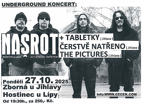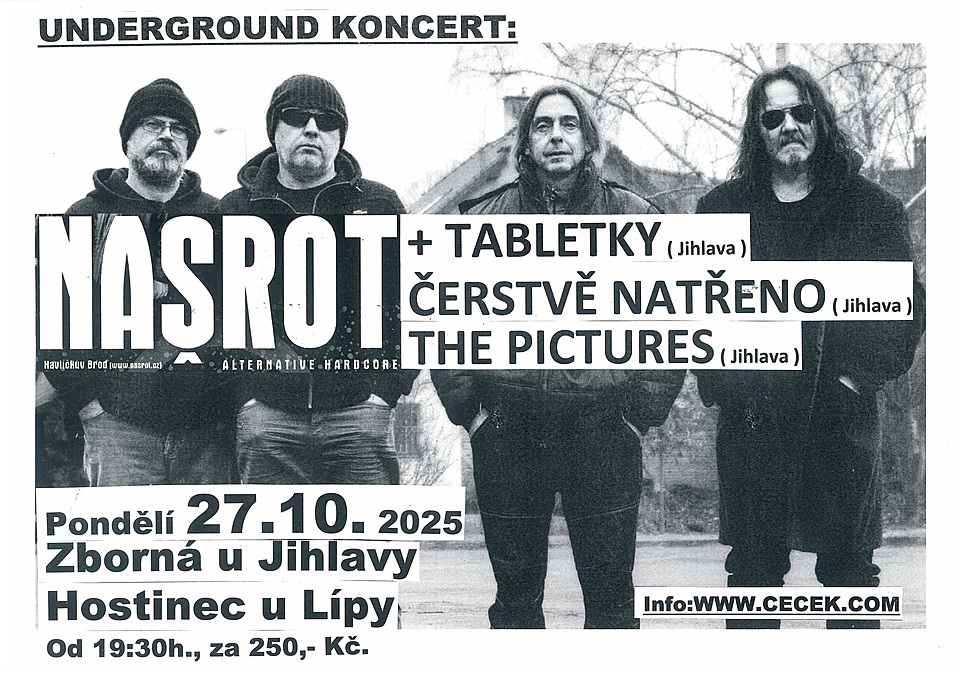 - 27. 10. 2025Hrají: Našrot ( Havl. Brod ), Tabletky ( Jihlava ), Čerst...