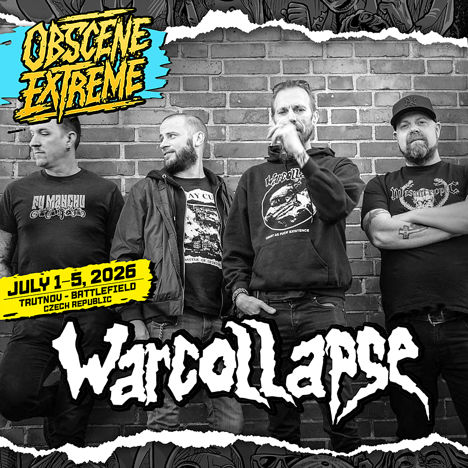 INTOXIKACE CRUSTEM!!! Připravte se na totální zkázu, protože vám přinášíme švédské crustové legendy WARCOLLAPSE!!! Kapela vznikla v roce 1991 a mistrně kombinuje d-beat se stoner crustem. Jejich nové album "Deliberate Indoctrination" prohlubuje zkoumání propasti chaosu, násilí a neúprosné temnoty! Ačkoli WARCOLLAPSE nepatří mezi nejaktivnější kapely, jejich vzácná vystoupení jsou kurva monumentální a vypovídají o více než třech desetiletích jejich drtivé hudby. Vystoupení WARCOLLAPSE na OEF 2026 nebude totiž jen obyčejná show – bude to také příležitost zažít odkaz kapely, která je důležitou součástí formování švédské crust punkové scény. Buďte svědky Crust as Fuck Existence!!! WARCOLLAPSE míří na Obscene Extreme!!!