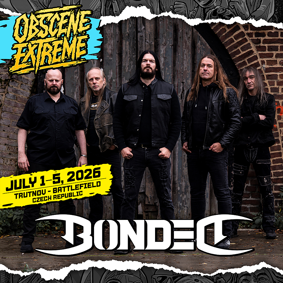 PŘIPOUTÁNI K THRASH METALU!!! Tato thrash banda rozhodně nesedí ve stínu velké německé teutonické čtyřky. BONDED je jméno, které můžeme registrovat na scéně od roku 2018 a znalci jistě vědí, že se kapela zformovala kolem bývalých dlouholetých členů Sodom, Bernemanna a Makky, a už od svého debutu "Rest in Violence" z roku 2020, celosvětově vydaného renomovaným labelem Century Media, masakrují vše živé naprosto nekompromisním thrash metalem!!! Od debutu se mnohé změnilo a kolem Bernemanna se utvořil kompletně nový tým, který je ovšem opravdu hvězdný!!! V sestavě BONDED najdeme totiž bývalé nebo současné členy kapel jako Kreator, Path of Golconda nebo Onkel Tom!!! A tento thrashový kvintet upekl druhou desku BONDED, "Into Blackness". A právě tyto hity zazní poprvé i na Obscene Extreme 2026!!! BONDED jsou pekelná jízda bez zastávky a nedají vám vydechnout!!! Co byste taky čekali od kovaných thrasherů?
