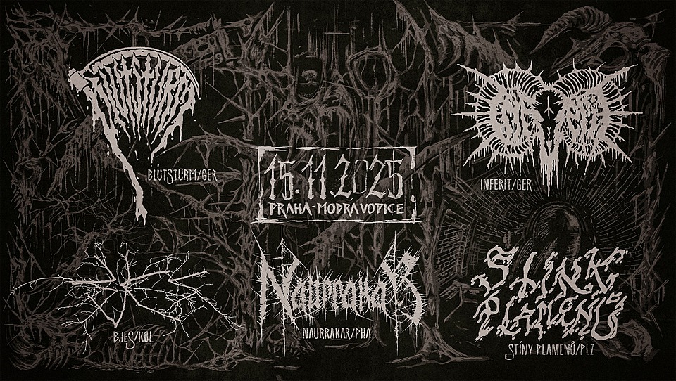 V sobotu 15. listopadu se v klubu Modrá Vopice uskuteční večer plný čistokrevného černého kovu. Z Německa dorazí hned dvě kapely - BLUTSTURM, kteří za sebou mají například vystoupení na kultovním festivalu Under The Black Sun, přijedou v doprovodu svých krajanů INFERIT. O lokální support se postarají atmosféričtí BJES, staré známé nukleární komando NAURRAKAR a chybět samozřejmě nemohou ani vládci plzeňských kanalizačních stok STÍNY PLAMENŮ.