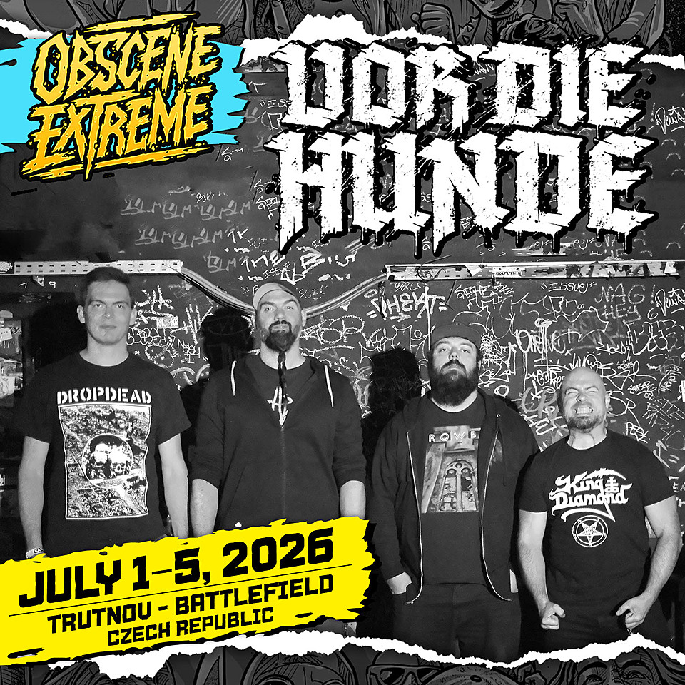 DRTÍCÍ GRINDCOROVÍ PSI!!! VOR DIE HUNDE, kapela z německého Pasova, bude dozajista velkým překvapením Obscene Extreme 2026!!! Čtveřice, která se zhlédla v intenzivním grindcoru podporovaném skvělými groove pasážemi – a že jim to sakra jde!!! Poháněni německými pseudo-intelektuálními texty o zlepšování světa a zvukem, který byl vědecky navržen předními odborníky tak, aby vyvolával touhu spotřebitelů, cílí na prémiové OEF publikum. Skvělý nářez, který je zahraný s neuvěřitelnou lehkostí a agresivním nábojem a který dává vzpomenout na nejlepší z branže, jakými byli bezesporu Nasum. VOR DIE HUNDE jsou také velkými fanoušky OEF a v jejich sestavě můžeme najít Davea – týpka, kterého si určitě pamatujete z několika ročníků, když poletoval po areálu Bojiště s ukulele a oblažoval nás legračními covery známých hitů!!! I tuto nadsázku mají totiž VOR DIE HUNDE ve své muzice!!! Tak je nepropásněte, bude to stát za to!!!