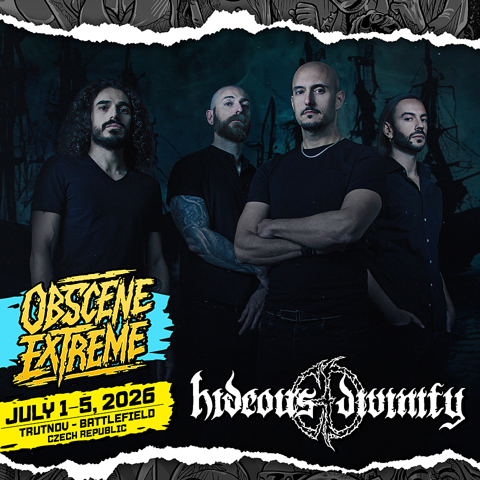 HIDEOUS DIVINITY – BEZBARIÉROVÉ ŠÍLENSTVÍ ZE ZEMĚ ŠPAGET!!! Tato kapela je dokonalým příkladem toho, co Italové dokážou s hudbou! Pravidla? Ale kdepak! Tito kluci jdou proti proudu už dvě desetiletí a daří se jim velmi dobře! Jejich kvalitní sekaná nakopne každého, kdo jen projde v dosahu jejich šíleného vystoupení. Milujeme to, jsou prostě úžasní! Kdo nevěří, ať se přijde přesvědčit sám, až budou do davu pouštět svoje bomby! Ať už je uvidíte naživo, nebo si poslechnete jejich album v pohodlí domova, vaše zvukovody vždy zasáhne krvavá exploze! HIDEOUS DIVINITY boří žánrové hranice, ale vždy zůstávají na špičkové úrovni, o tom není pochyb!!! Přijďte je podpořit, nezklamou vás!!!