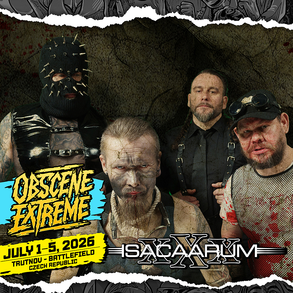 PRVNÍ TŘÍDA OBSCÉNOSTI!!! Na Bojiště se vrací jedna ze stálic Obscene Extreme festivalu – ISACAARUM!!! Jeden by řekl, že kapela se po rozpadu v roce 2014 už nedá dohromady, ale všichni víme, že tomu tak není, protože ISACAARUM jsou od roku 2018 zpět a jedou ve velkém stylu. Banda, která se utvořila kolem excentrického frontmana Chymuse, opravdu ví, co chce, a od svého návratu tito čtyři psychopati dokázali vydat skvělou desku "Impregnation", kde potvrzují svoji třídu!!! Čekejme očekávané: kulometnou palbu bicích, chytlavé kytarové riffy a mistrně zvrácený zpěv v několika šílených polohách à la Mr. Chymus!!! Toto budou ISACAARUM a jejich spermetal na OEF 2026!!! První třída obscénnosti!!!