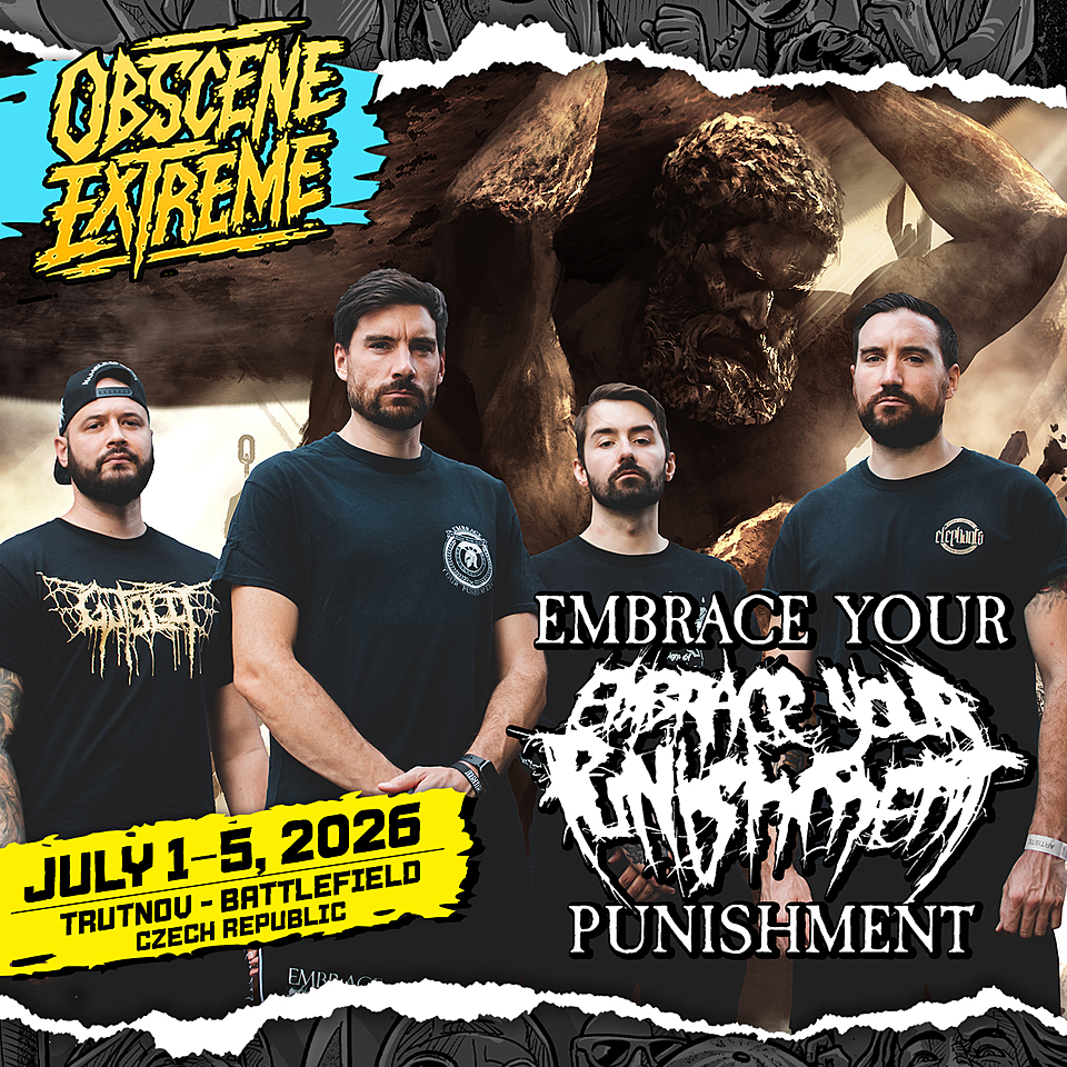 EMBRACE YOUR PUNISHMENT – NEUTICHAJÍCÍ EXPLOZE Z FRANCIE!!! Toto kvarteto modernistů v extrémní hudbě se s ničím nesere! Bez ohledu na okolí odpalují své energetické bomby a svou výbušností rozmetají vše kolem sebe a pro kotel je tato hudba jako stvořená! Kotel to bude zaručeně brutální, bez ohledu na to, zda o nich fanoušci OEF vůbec někdy slyšeli. Skvělý tip pro fanoušky Pyrexie, Dying Fetus, Misery Index a podobných šíleností. Je třeba dodat něco víc? Snad jen, že to bude náhul! Naviděnou!!!