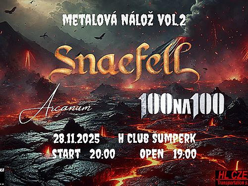 Heavymetaloví úderníci Snaefell ze Šumperka zvou opět všechny fanoušky a příznivce multižánrových metalových odnoží do hudebního klubu Na Háčku v Šumperku na metalovou nálož vol. 2, která se uskuteční 28. listopadu 2025.