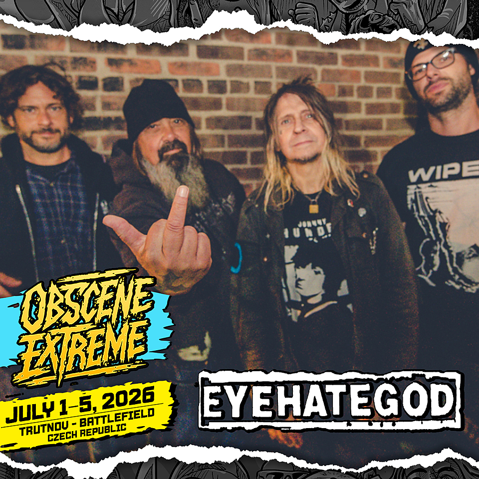 SONICKÉ DRTÍCÍ UTRPENÍ!!! EYEHATEGOD!!! Kapku jiná muzika, než na kterou jsme na Obscene Extreme Festivalu zvyklí, ale i ta na krvavě rudou hlínu Bojiště patří! Letití fanoušci OEF dobře vědí, že EYEHATEGOD už v roce 2014 na našem festivalu vystupovali a ten naprosto psychedelický zážitek vstřebáváme dodnes. Vznikli v roce 1988, obrátili punk a metal 90. let naruby a vytvořili unikátní zvuk, který byl kopírován tisíci kapel. Spojili bahenní riffy a robustní rytmickou práci s úchylnou poezií Mikea Williamse, a to celé je podmalováno zastrašující barikádou hluku a zpětných vazeb kytar. Mohli by být označeni za otce sludge, ale sami EYEHATEGOD se označují za „přízemní, zkurveně zesílené blues“ – a my nemůžeme než souhlasit! S řadou kultovních, žánr definujících alb, včetně jejich agresivního debutu z roku 1990 "In The Name Of Suffering", přinesli nezapomenutelně hutné, masivní a chytlavé hymny, které miluje každý fanda sonického extrému! Narkotická masa pomalého drcení, to jsou EYEHATEGOD! A jsou zpět na OEF!!!