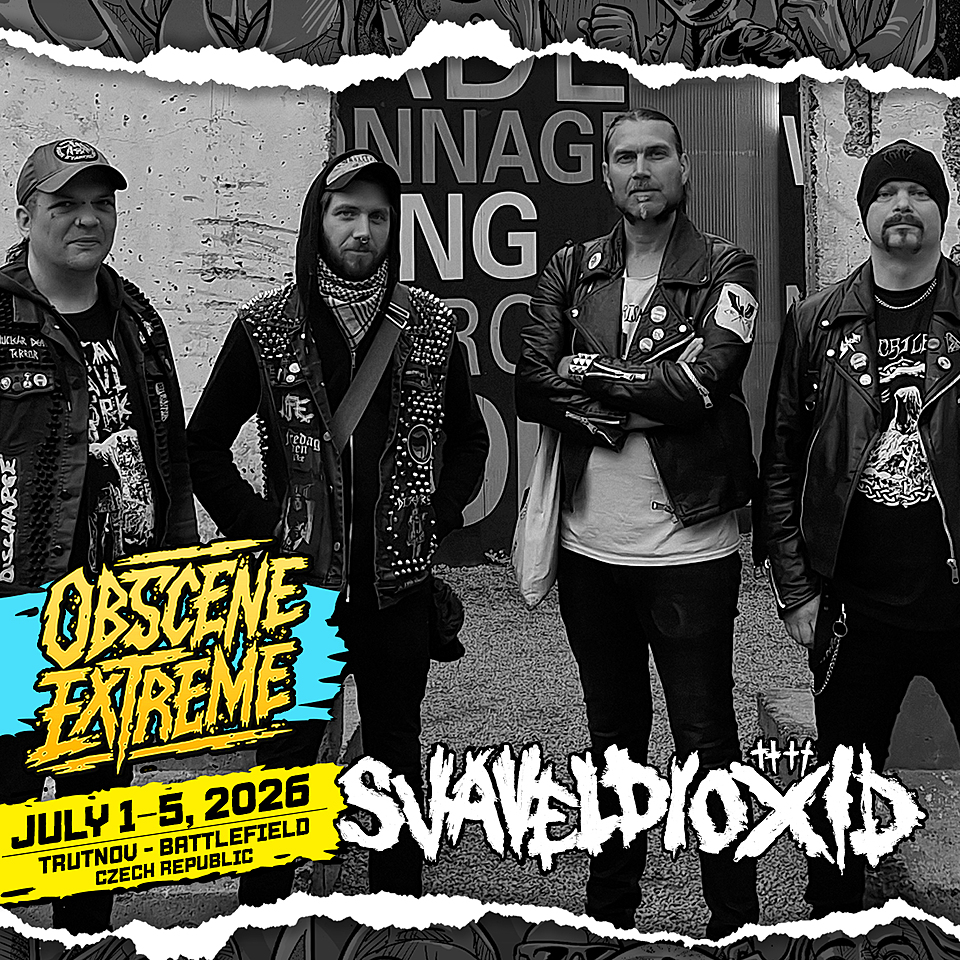 SKANDINÁVSKÁ HARDCORE KOMETA SVAVELDIOXID!!! Švédský d-beat/crust na Obscene Extreme Festivalu? To je samozřejmě tradiční spojení! Nebude tedy velkým překvapením, že vám přinášíme další skandinávskou hardcore kometu posledních let! SVAVELDIOXID! Tohle jméno rezonuje punkovou scénou už celou poslední dekádu. Od jejich debutního alba "Ändlös Mardröm" uplyne v roce 2026 přesně 10 let od jeho vydání. A že nepůjde o standardní návštěvu, svědčí i fakt, že sestavu kapely tvoří členové rozesetí po celém Švédsku a jejich živé vystoupení je vždy takový malý zázrak. Každopádně v této sestavě najdete například bývalé členy kapel Warvictims, Protestera či Disfear. Pikantní tuzemskou stopou je i to, že jejich nahrávky vycházejí na labelu Phobia Records. Tuhle raw punkovou jízdu ve stylu Discharge/Anti Cimex či Disclose a Framtid lze jen vřele doporučit!!!