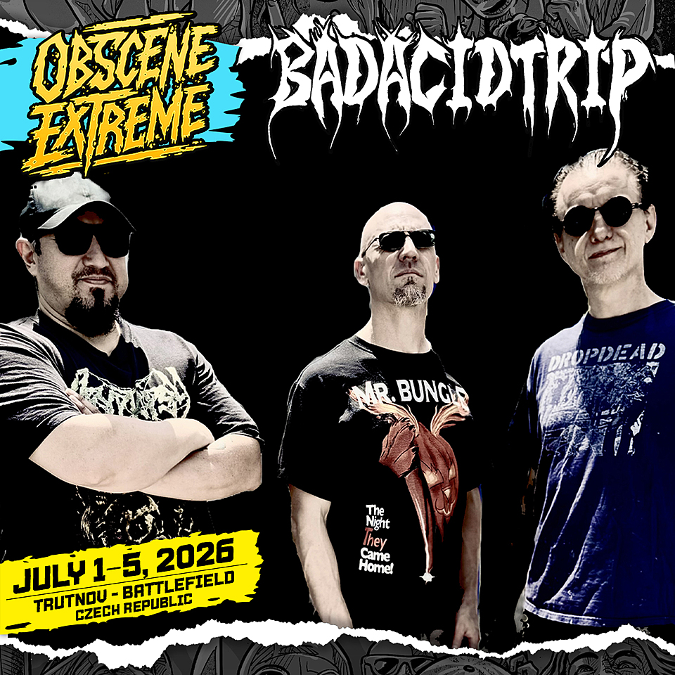 GRINDCOROVÁ AVANTGARDA!!! Grindcorový subžánr nemusí být pouze ten znějící jako old school, a kapela, kterou vám teď představíme, vás o tom přesvědčí. BAD ACID TRIP z americké Kalifornie je přesně ten úkaz, kdy je možné vzít grindcore a oživit ho prvky zdánlivě nesourodých stylů, abychom dostali naprosto avantgardně znějící mix plný zvratů, ale také frenetických blastbeatových temp s notnou dávkou energie, pro kterou je BAD ACID TRIP znám na celosvětové scéně už od roku 1989!!! Od té doby BAD ACID TRIP ušli notný kus cesty a stále svůj originální styl vylepšují, což můžete slyšet na jejich zatím poslední desce "Decency Anomoly". Sonická brutalita, která odráží absurditu světa - to jsou BAD ACID TRIP. A pro všechny fajnšmekry, kteří hledají zvláštní nálady i v extrémních stylech, si toto trio přijede odbýt svou premiéru na Obscene Extreme festivalu!!! Nezmeškejte je!!!