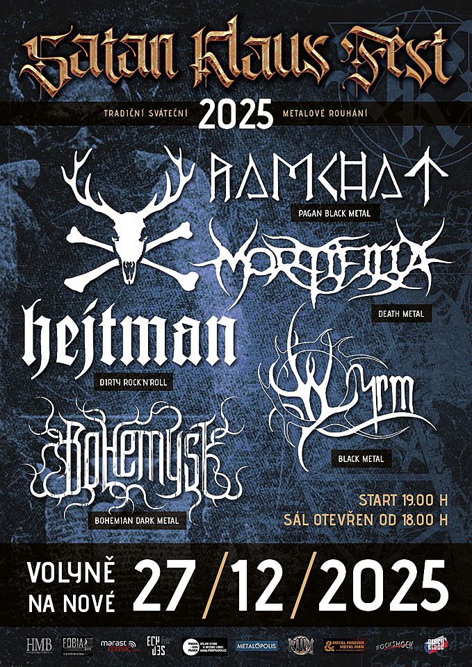 Tradiční metalové rouhání = Satan Klaus fest ve Volyni, letos za účasti pekelníků HEJTMAN, RAMCHAT, WYRM, MORTIFILIA a pořádajících BOHEMYST. To vše v kulturním domě Na Nové ve Volyni.