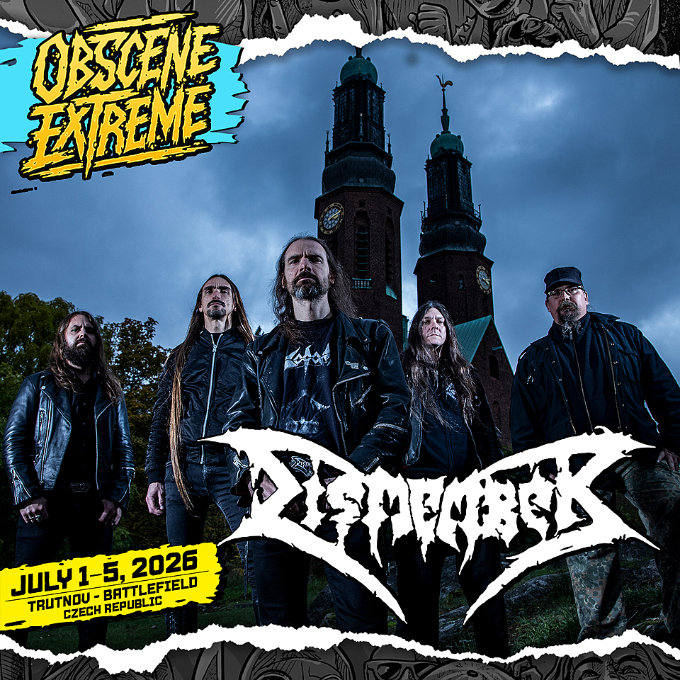 INDECENT AND OBSCENE: DISMEMBER SE VRACÍ NA OEF 2026!!! Z mrtvých povstali už několikrát. A znovu povstanou v roce 2026 na festivalu Obscene Extreme! DISMEMBER – švédská deathmetalová legenda – se vrací na OEF po vystoupeních v letech 2006 a 2022, aby znovu připomněli, proč jsou alba "Like an Ever Flowing Stream", "Indecent and Obscene" či EP "Pieces" navždy vytesána do základů death metalu. Kapela, která si nikdy nepotrpěla na velká turné ani festivalovou rutinu, vybírá svá vystoupení velmi pečlivě. O to větší poctou je, že se znovu rozhodla pro trutnovské Bojiště – místo, kde underground dýchá historií, smrtí i znovuzrozením. Na tomto místě, obklopeném skutečnými masovými hroby a železnými kříži, znovu zazní švédské válce, které formovaly celou death metalovou scénu. Nečekejte nostalgické vzpomínky ani žádný odpočinek v Casket Garden. Toto je čistá, nekompromisní deathmetalová síla v podání kapely v původním složení z roku 1991, kdy nahrála legendární debut "Like an Ever Flowing Stream". A z něj uslyšíte téměř všechny skladby také na OEF 2026 naživo. From Dream to Dream – Like an Ever Flowing Stream. DISMEMBER na OEF 2026!!!