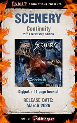 Po CD reedicích prvních dvou alb „The Drowning Shadow Of Mankind“ (1997/2023) a „Philosophy Of Ages…“ (2002/2024), bude letos v březnu, přesně po 20 letech od původního vydání, realizována CD reedice třetího alba „Continuity“. První dvě alba si kapela ve své době vydala sama pouze na pálených CD, proto v případě reedicí u Pařát Productions došlo na verze standard jewel box. „Continuity“ se stalo první nahrávkou SCENERY pod vydavatelskou firmou a ve verzi standard jewel box, proto byl pro reedici zvolen digipak a bonusový materiál, který dozajista potěší fanoušky kapely a sběratele CD v jednom. Upravený frontcover „Continuity“ upozorňuje na skutečnost reedice po dvaceti letech, šestnáctistránkový booklet v češtině i angličtině plný vzpomínek propojuje minulost kapely se současností. Jak už tomu u vydání Pařát Productions bývá, chybět nebude ani nabídka triček a mikin s motivem „Continuity – verze 2026“.