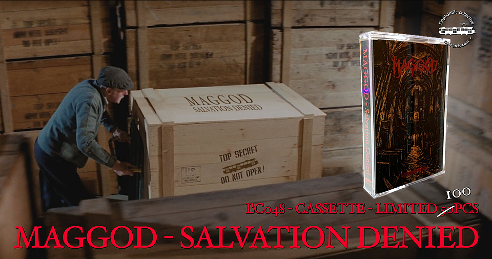 Na podzim roku 1992 zadržela policie během razie na letenské burze několik prodejců, které obvinila z přeprodávání zboží, pocházející z trestné činnosti. Nejmenovaný vysoký policejní důstojník dnes přiznává, že během utajené akce "sýkorka" došlo k několika přehmatům a do policejního skladu na Harfě putovala tenkrát i neoznačená krabice, která zde díky chybné archivační dokumentaci zůstala zapomenuta několik desetiletí. Letos v lednu ji během stěhování náhodně objevil Bohous Nemec a po jejím násilném otevření zde nalezl 100 ks magnetofonových pásek deathmetalové kapely Maggod s debutovým album "Salvation Denied", tedy celý náklad, který měl původně vyjít už v říjnu roku 1992. Nyní, díky laskavé péči L'inphantile Collective, vychází album konečně po 34 letech a vy si ho můžete koupit: