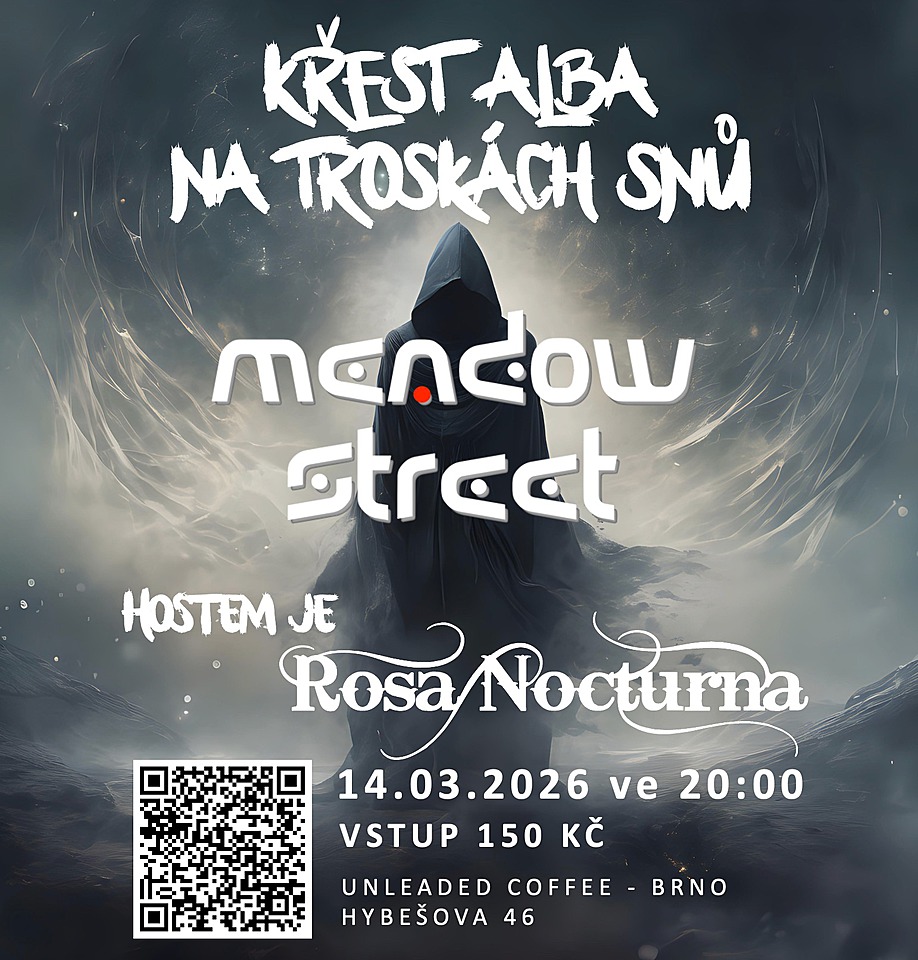 Večer doplní jako speciální host kapela Rosa Nocturna. Program: 20:00 Rosa Nocturna 21:30 Meadow Street – křest alba