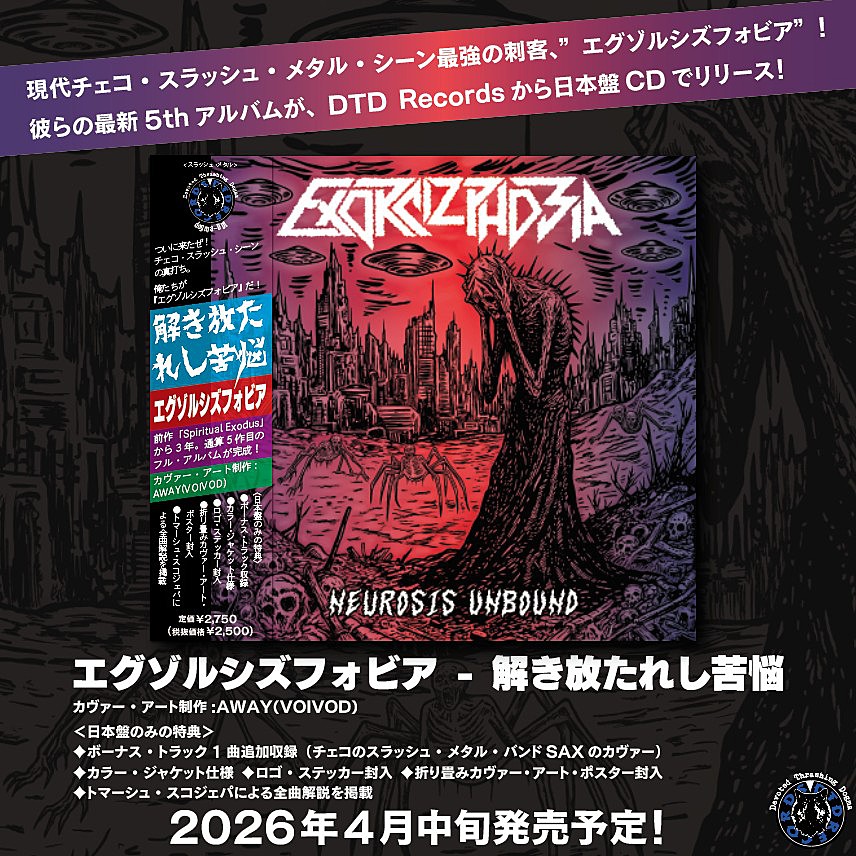 Jak bylo avizováno již dříve, Exorcizphobia vydá svoje páté řadové album "Neurosis Unbound" 13.4. pod Doomentia Records a nyní vyhazuje první singl k titulní věci. Dále také oznamuje speciální japonskou CD verzi, která vyjde pod DTD Records téhož data. Součástí edice bude cover skladby "Popravčí Píseň" od SAX, odlišný přebal, plakát a další zajímavé nuance.
