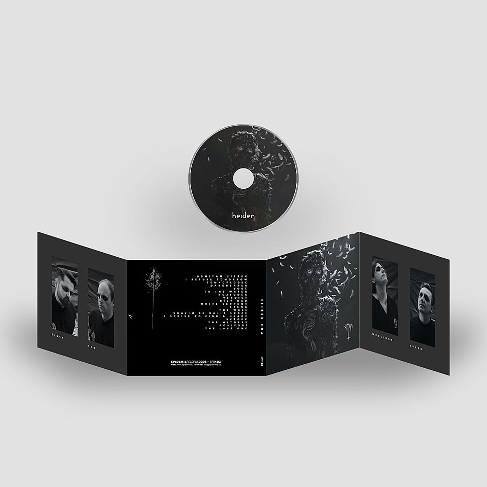 „Po třech letech od ceněného alba „Andzjel“ přichází moravská kapela HEIDEN se svou desátou deskou „Cma“. Nahrávkou, která je přímým pokračováním předchozí kapitoly, ale zároveň jejím temným prohloubením. Hudba HEIDEN se znovu valí krajinou Bílých Karpat — ne jako kulisa, ale jako vnitřní prostor, v němž se paměť, vina a strach slévají do jediného proudu. Devět skladeb Cmy vyrůstá z ticha a popela, z obrazů horských vesnic, kde se zastavil čas, a z lidských příběhů, v nichž hranice nezačínaly v krajině, ale uvnitř lidí. Čisté, hypnotické riffy a naléhavý vokál vytvářejí pocit neodvratné tísně — jako noční úprk krajinou, která už neposkytuje úkryt. HEIDEN vyšli před více než dvaceti lety z blackmetalového podhoubí, nikdy se mu však nepodřídili. Jejich hudba byla vždy svobodná, zakořeněná v krajině, jazyce a osobní zkušenosti, otevřená experimentu i tichu. Cma na tuto cestu navazuje s nebývalou intenzitou. Nejde o album, které by nabízelo katarzi, sílu nebo útěchu. Je to deska zádumčivosti, tíživého smutku a obav, zrozená z příběhů pohraničí okupovaného Československa, kde se lidskost rozpadala pod tlakem strachu a nenávisti. Nesnaží se posluchače ohromit — vtahuje ho do stavu sklíčenosti, v němž se minulost neustále vrací. Přijmout tmu ne jako efekt, ale jako neoddělitelnou součást lidské zkušenosti. Cma je nejtemnější nahrávkou v historii HEIDEN. A zároveň jednou z nejupřímnějších.“